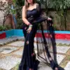 The highlight of this saree is the exquisite multi-colored thread embroidery. The intricate patterns and vibrant colors make this saree a work of art. The embroidery adds a touch of elegance and sophistication to your ensemble.