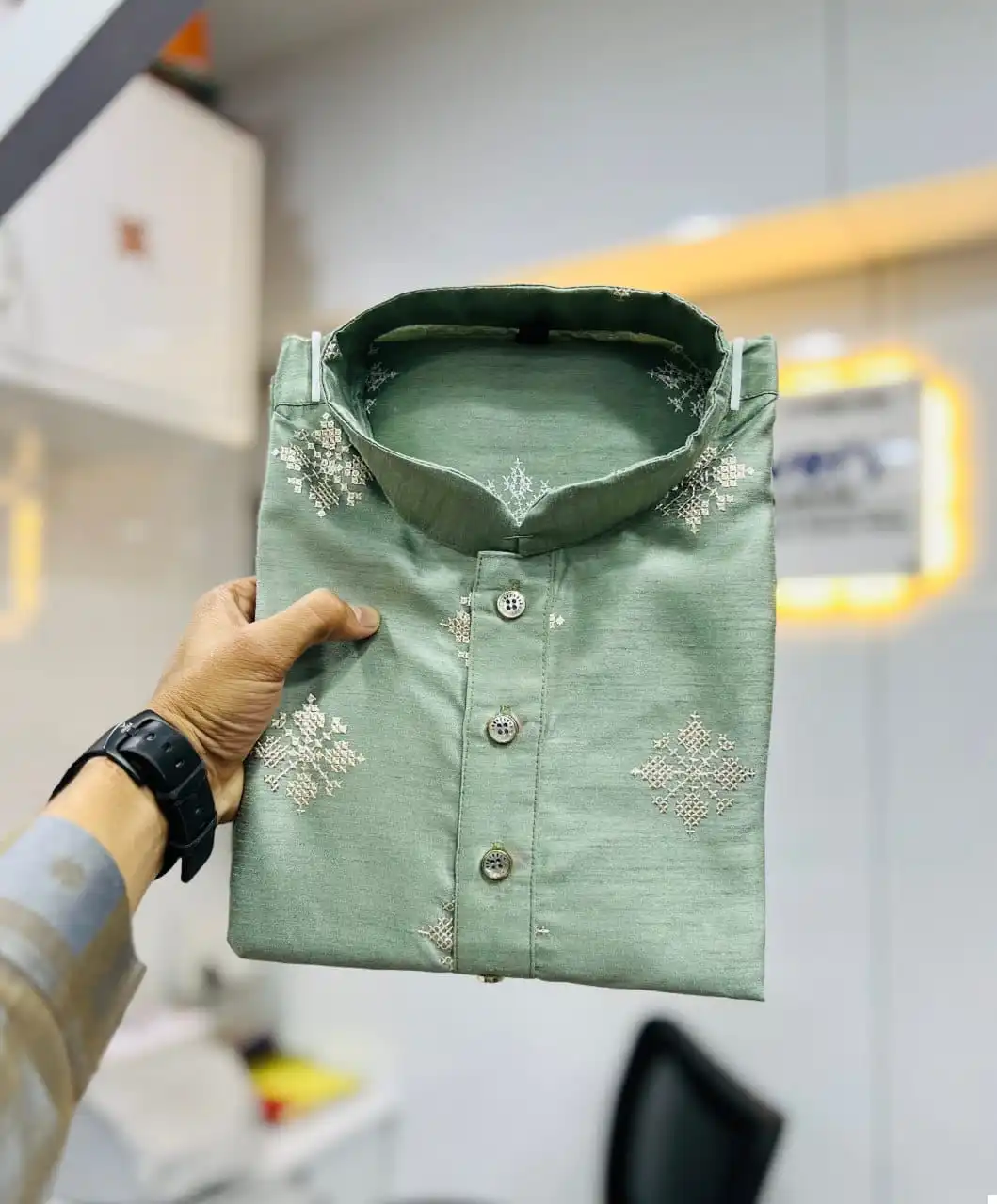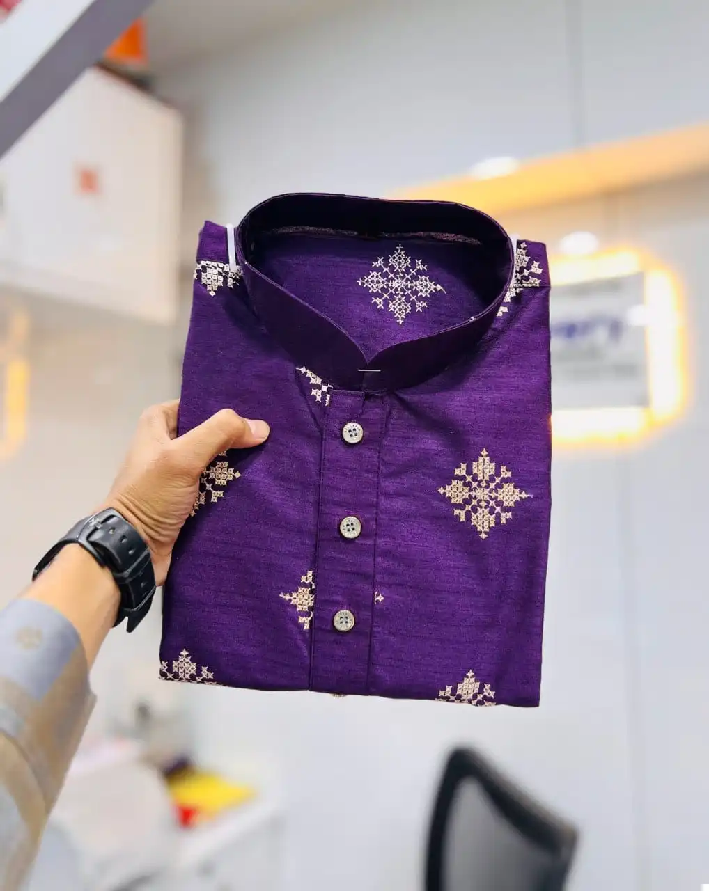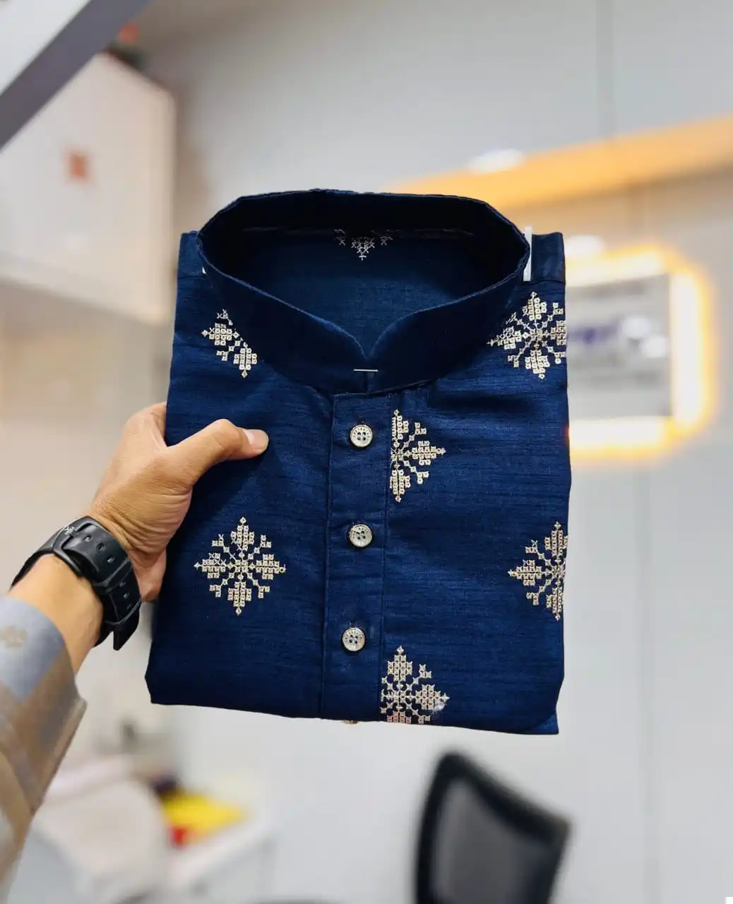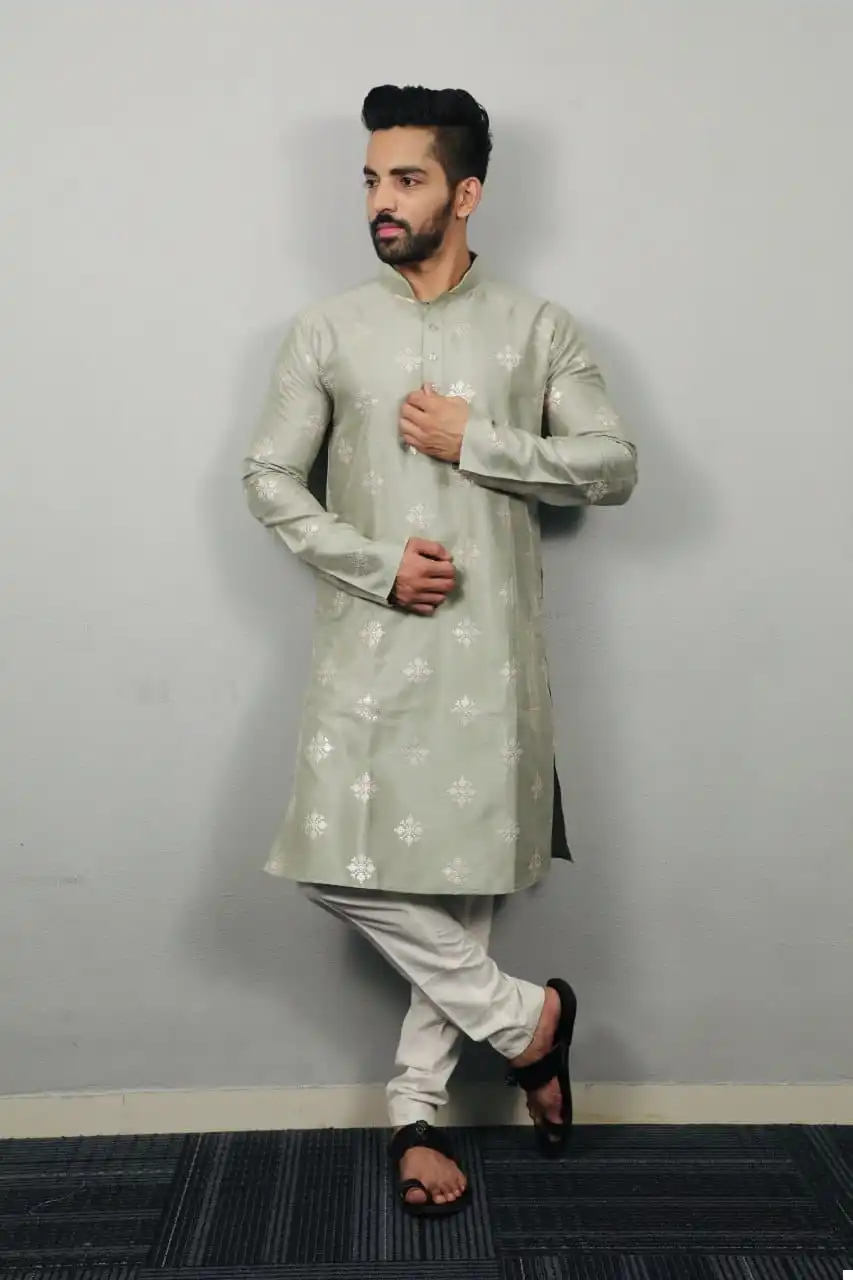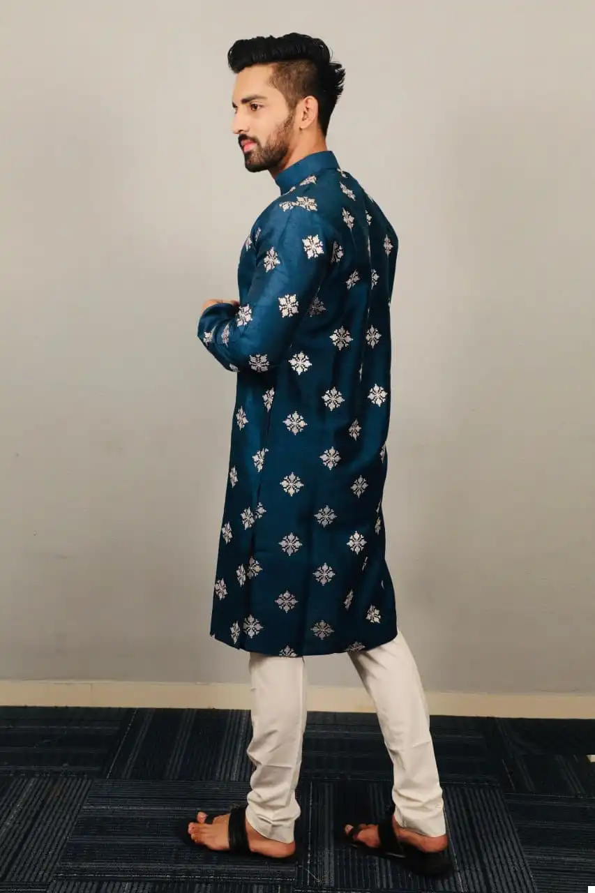 Priced at $1010 per piece, our Kurta-Pajama ensemble reflects its exceptional quality and exquisite craftsmanship. Each piece is meticulously crafted to ensure durability and sophistication, ensuring you stand out with effortless grace and style.