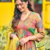 Dupatta: The outfit is completed with a pure muslin dupatta, which harmonizes beautifully with the rest of the set. The lightness and flow of the muslin fabric enhance the grace and elegance of the dupatta, adding to the outfit’s overall appeal.