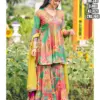 Sharara: Complementing the top is a sharara made from the same high-quality pure muslin. This traditional bottom wear is designed to offer both comfort and style, making it perfect for festive occasions, weddings, and other formal events.