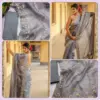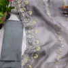 Top: This suit set features a top made from organza silk, a fabric known for its sheer elegance and lightweight feel. The top is adorned with beautiful thread embroidery and sequence work, creating a delicate and intricate design that adds a touch of sophistication and charm to the ensemble.