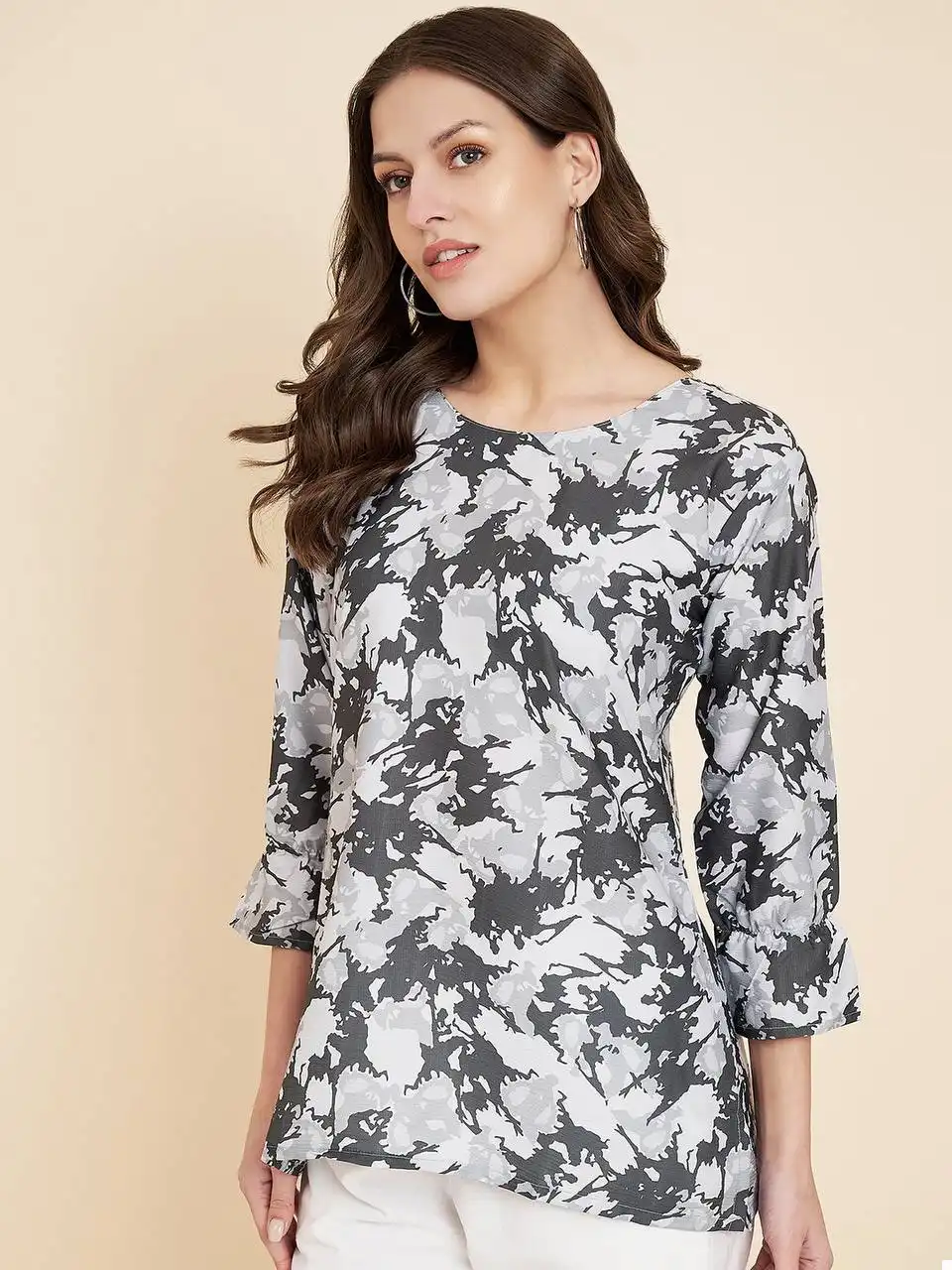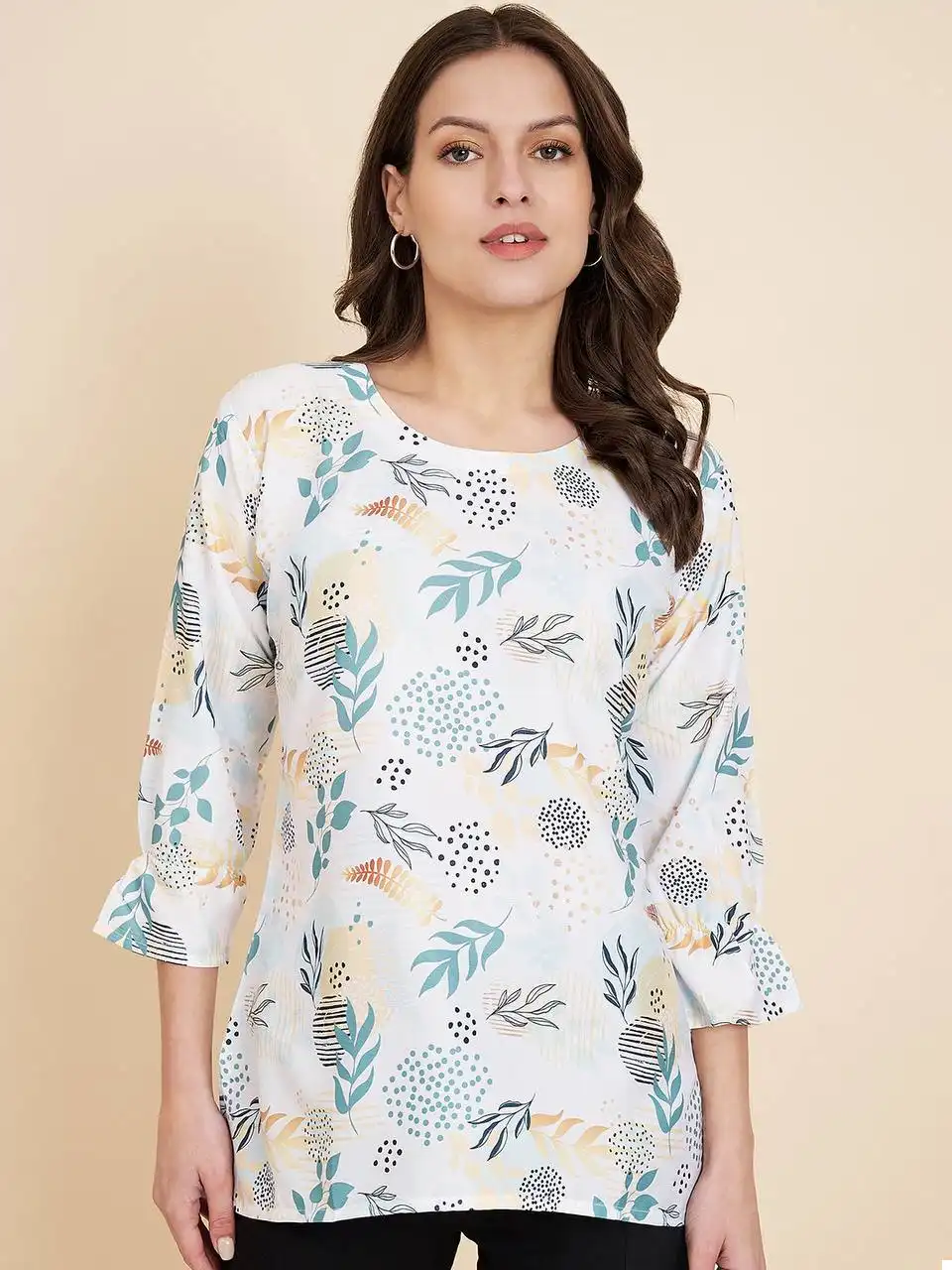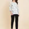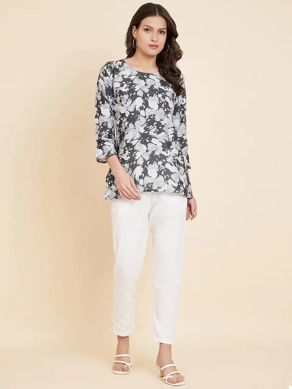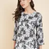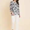 - Top: Crafted from high-quality Crush Crape fabric, this top is a testament to both comfort and style. The fabric drapes gracefully and feels soft against your skin, making it ideal for everyday wear. Its simplicity and understated elegance make it a versatile choice that pairs well with jeans, skirts, or any bottom of your choice.