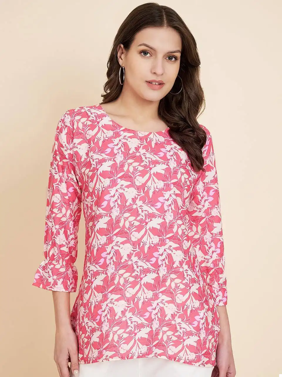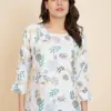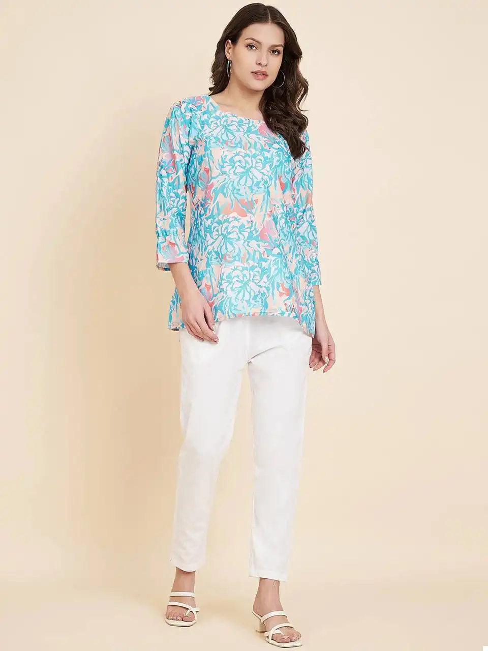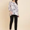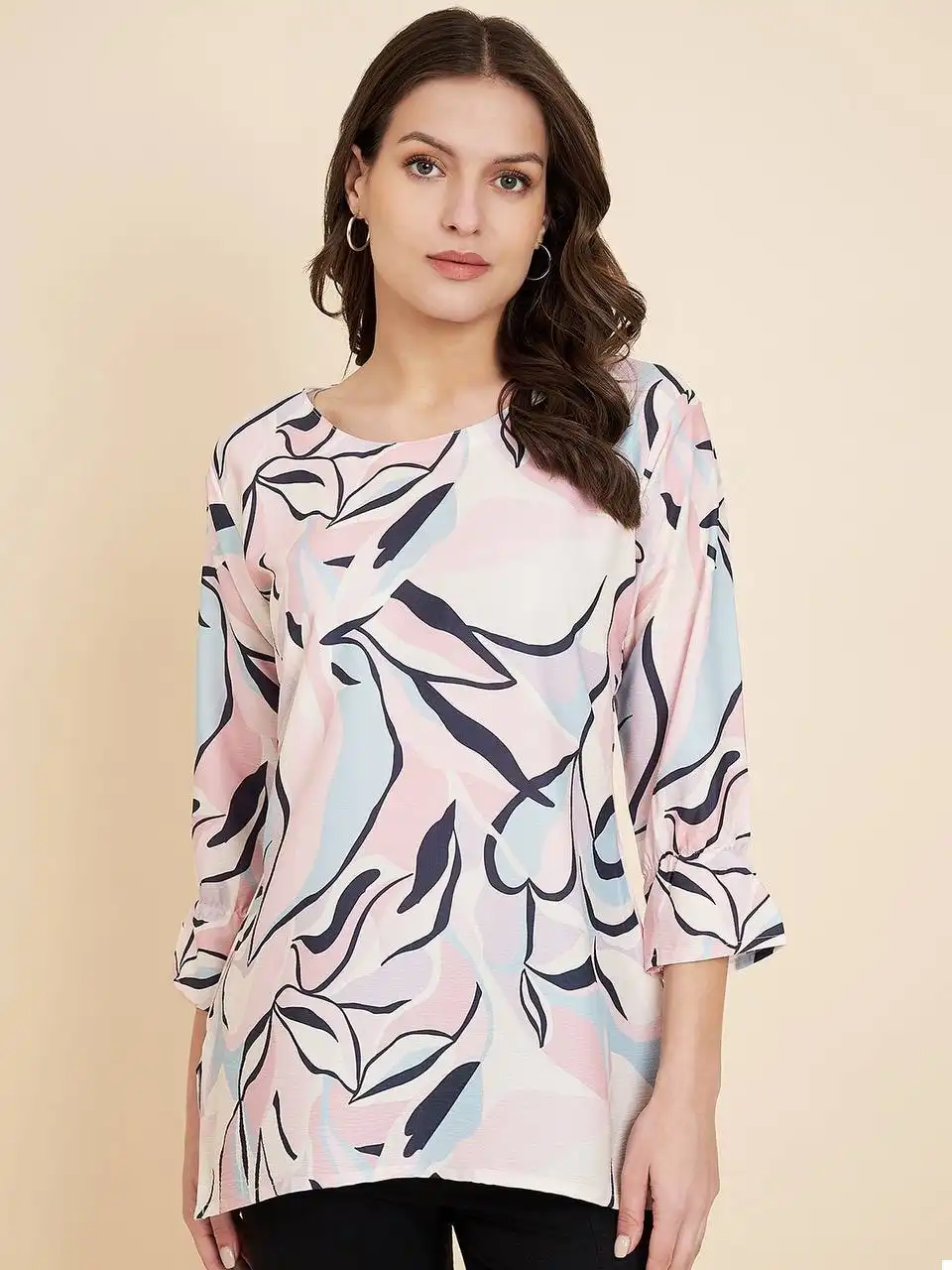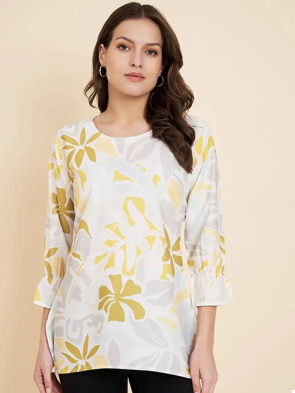 - Top: Crafted from high-quality Crush Crape fabric, this top is a testament to both comfort and style. The fabric drapes gracefully and feels soft against your skin, making it ideal for everyday wear. Its simplicity and understated elegance make it a versatile choice that pairs well with jeans, skirts, or any bottom of your choice.