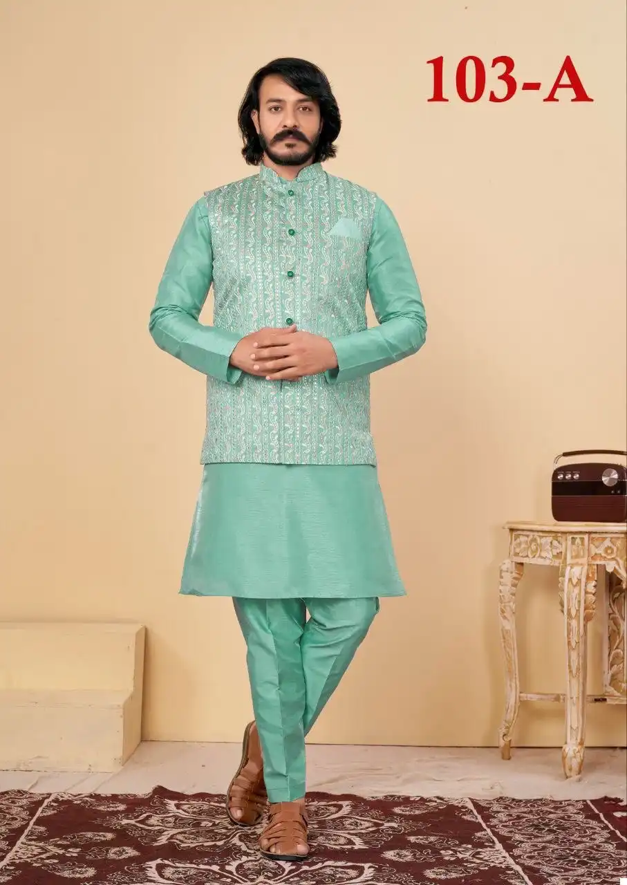 Vardan Ethnic Short Kurta Vol 1 Heavy Banarasi Bangalore Wholesale Kurta Pajama With Koti Catalog