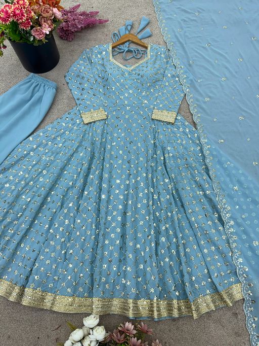 Fabric: Heavy Georgette with Embroidery Sequence Work