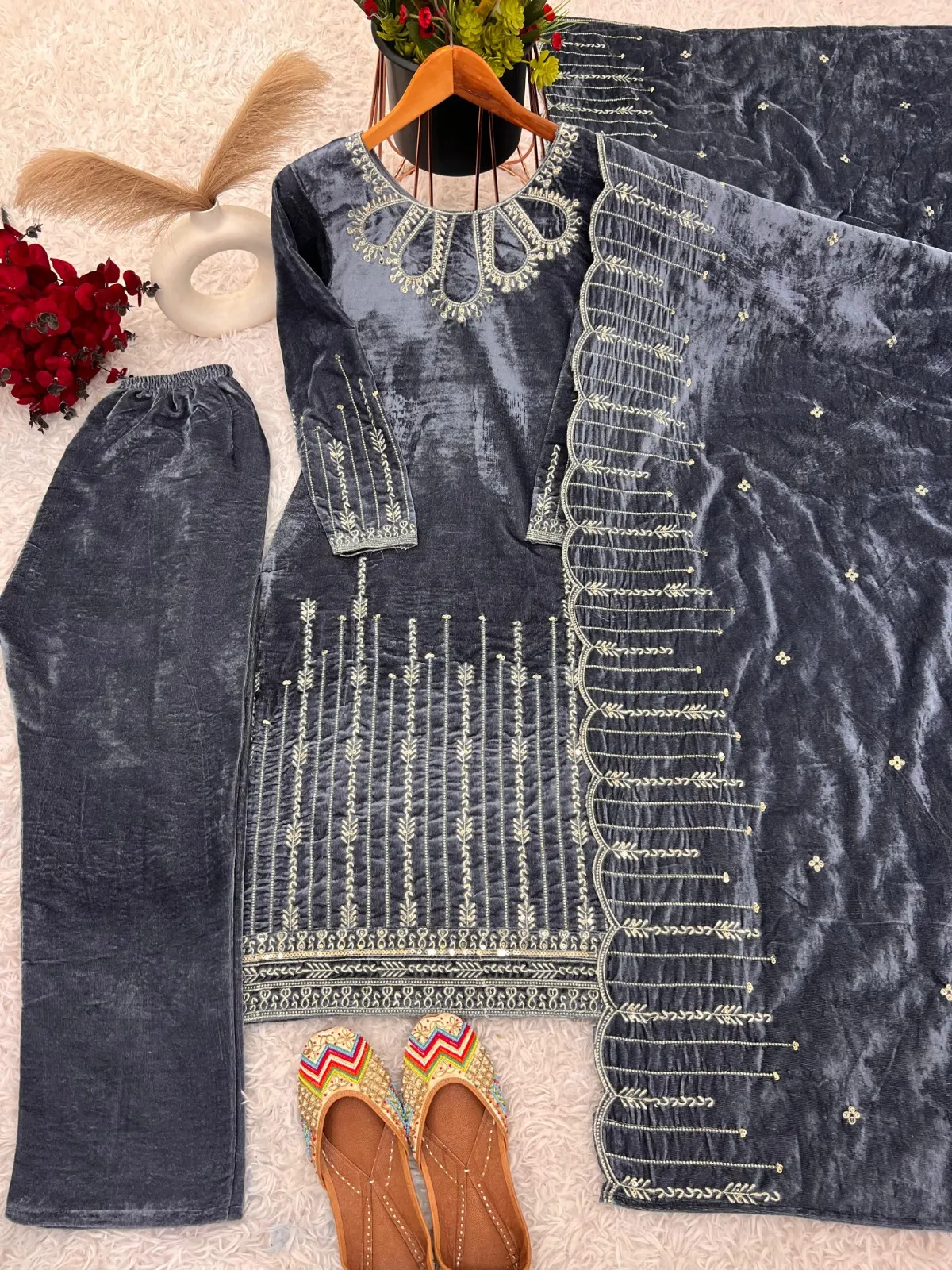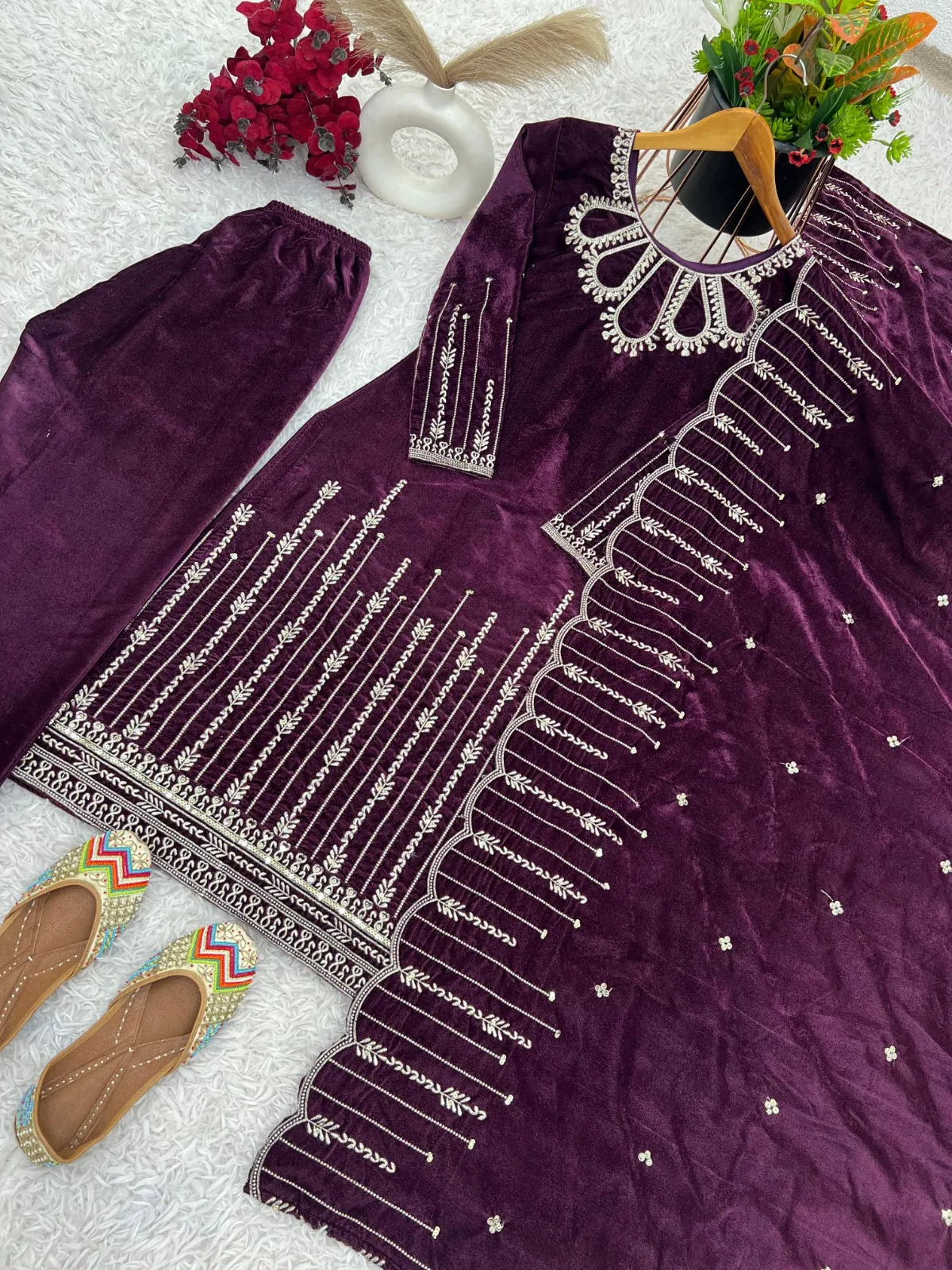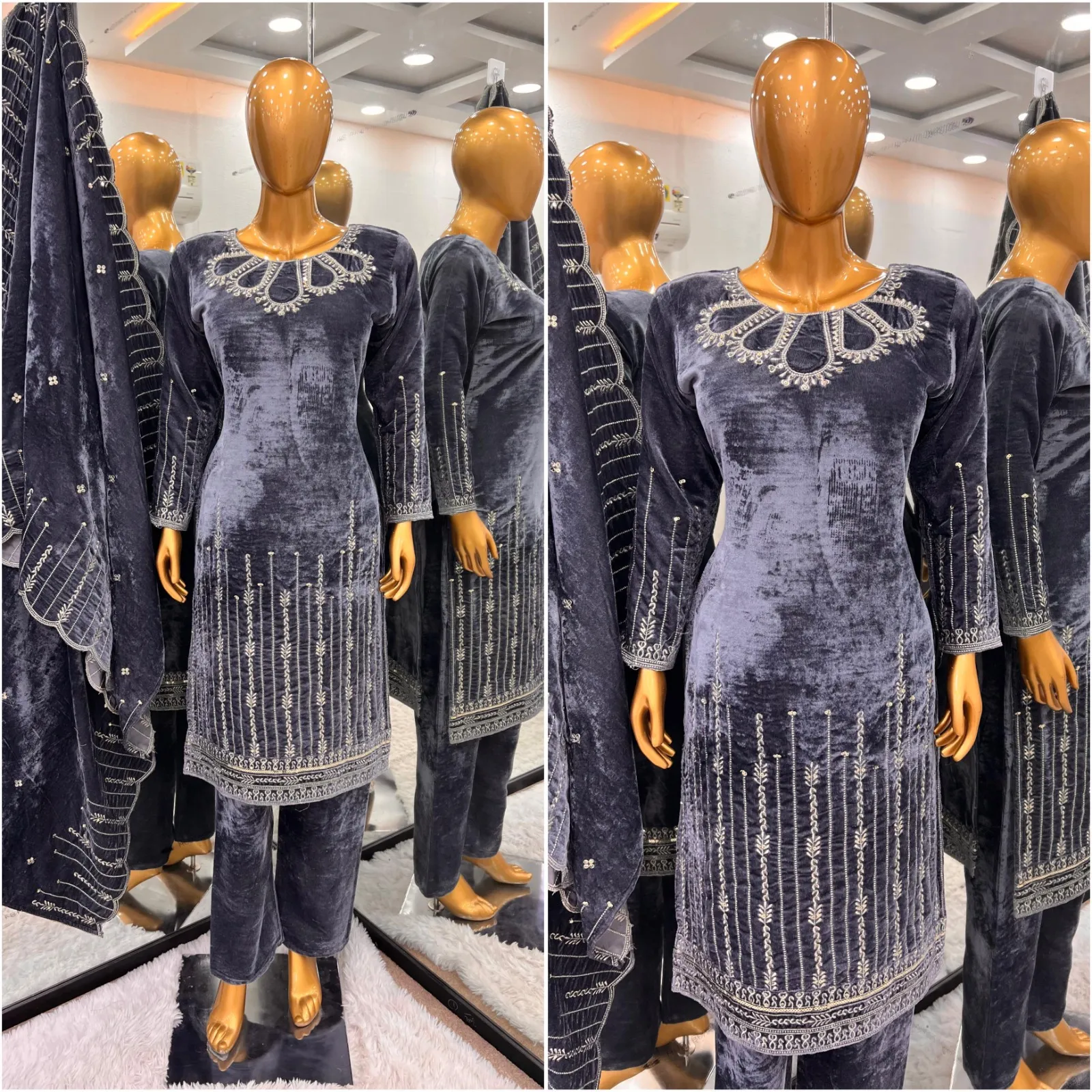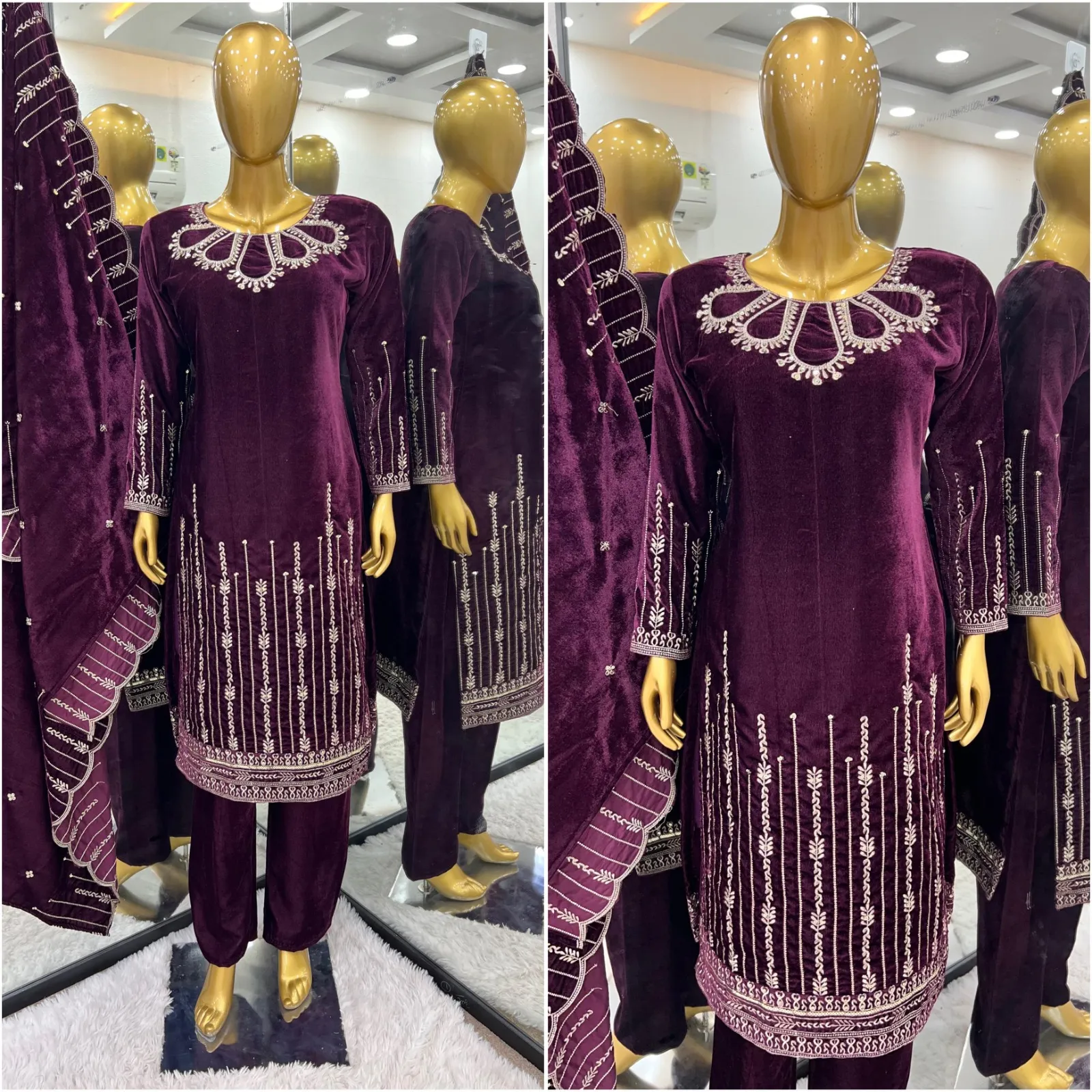 | Bottom | Viscose Velvet with Embroidery Sequence Work (Full Stitched) |