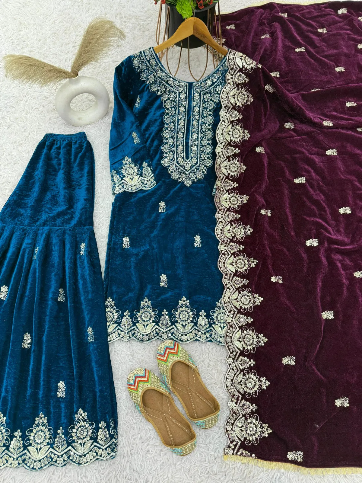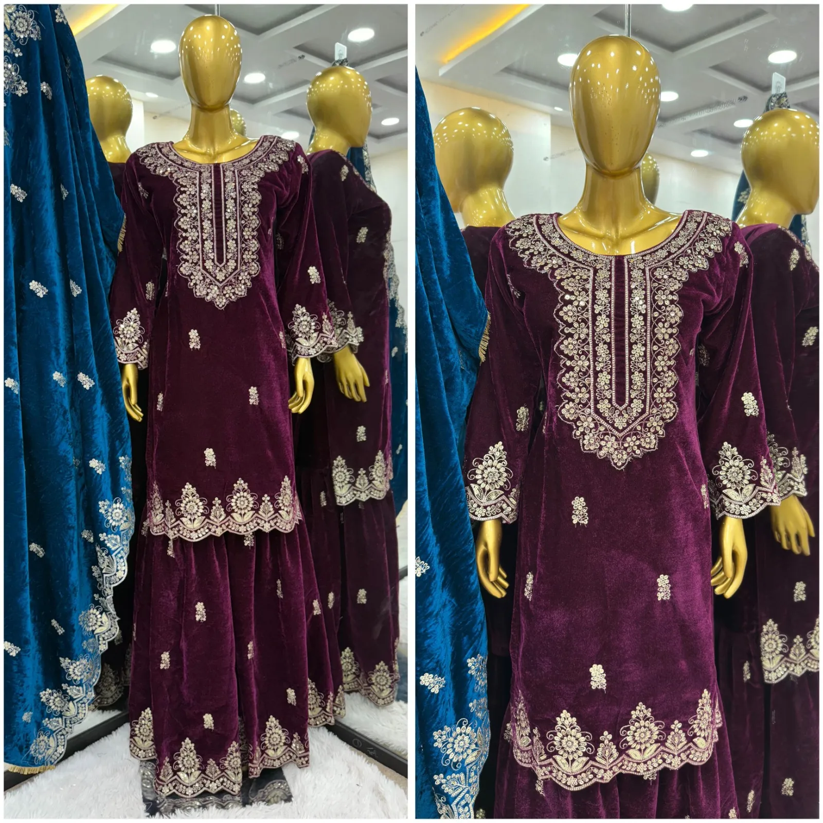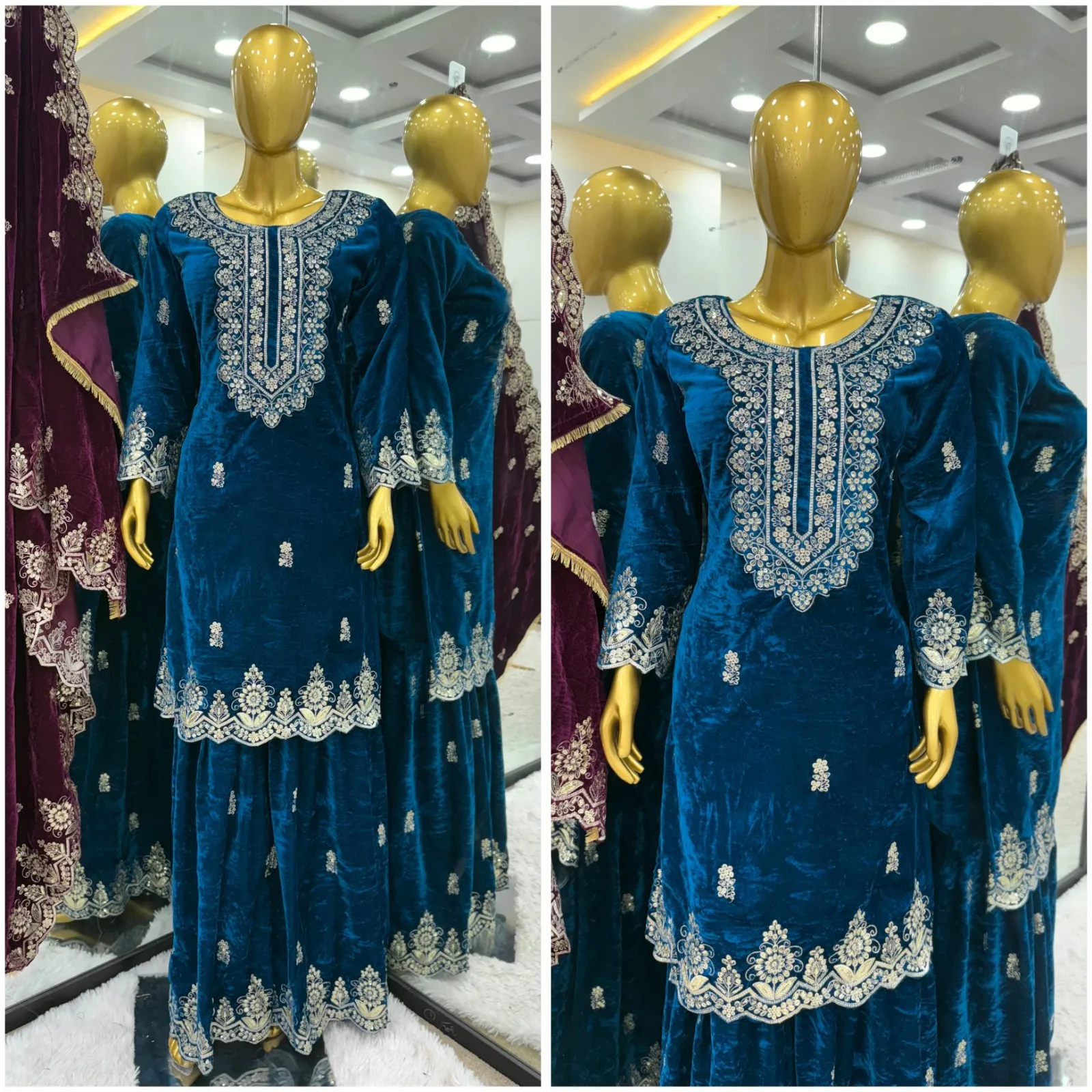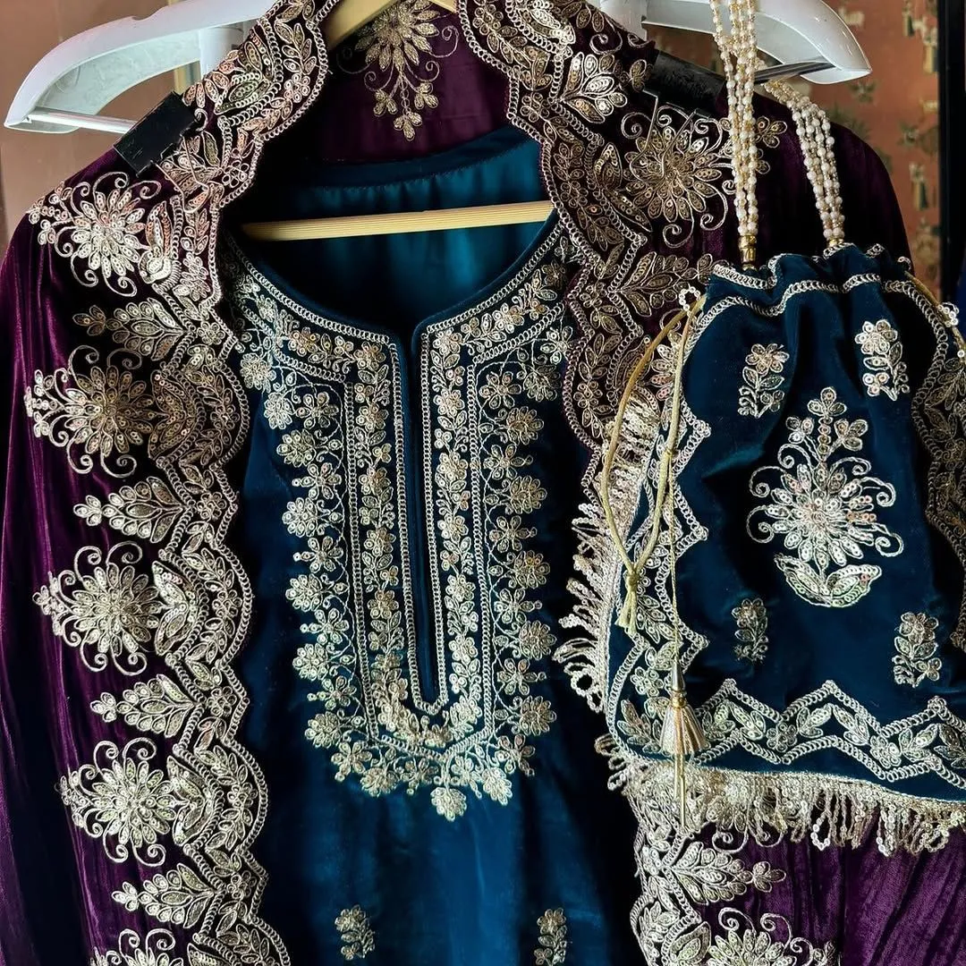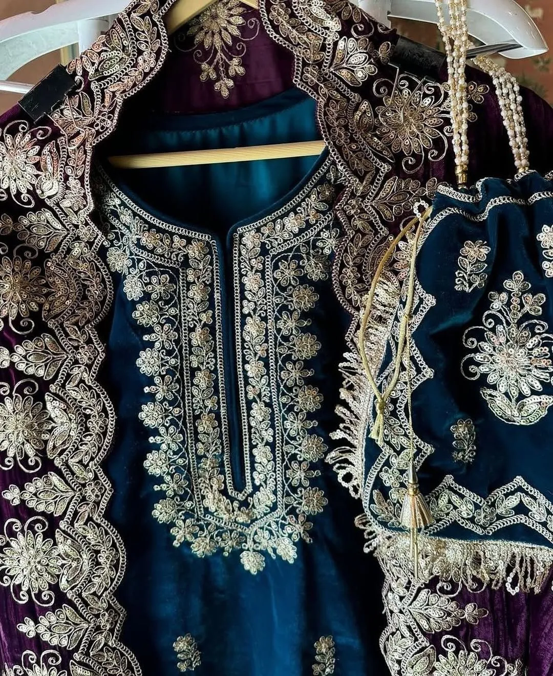 | Bottom | Viscose Velvet with Embroidery Sequence Work (Full Stiched) |
