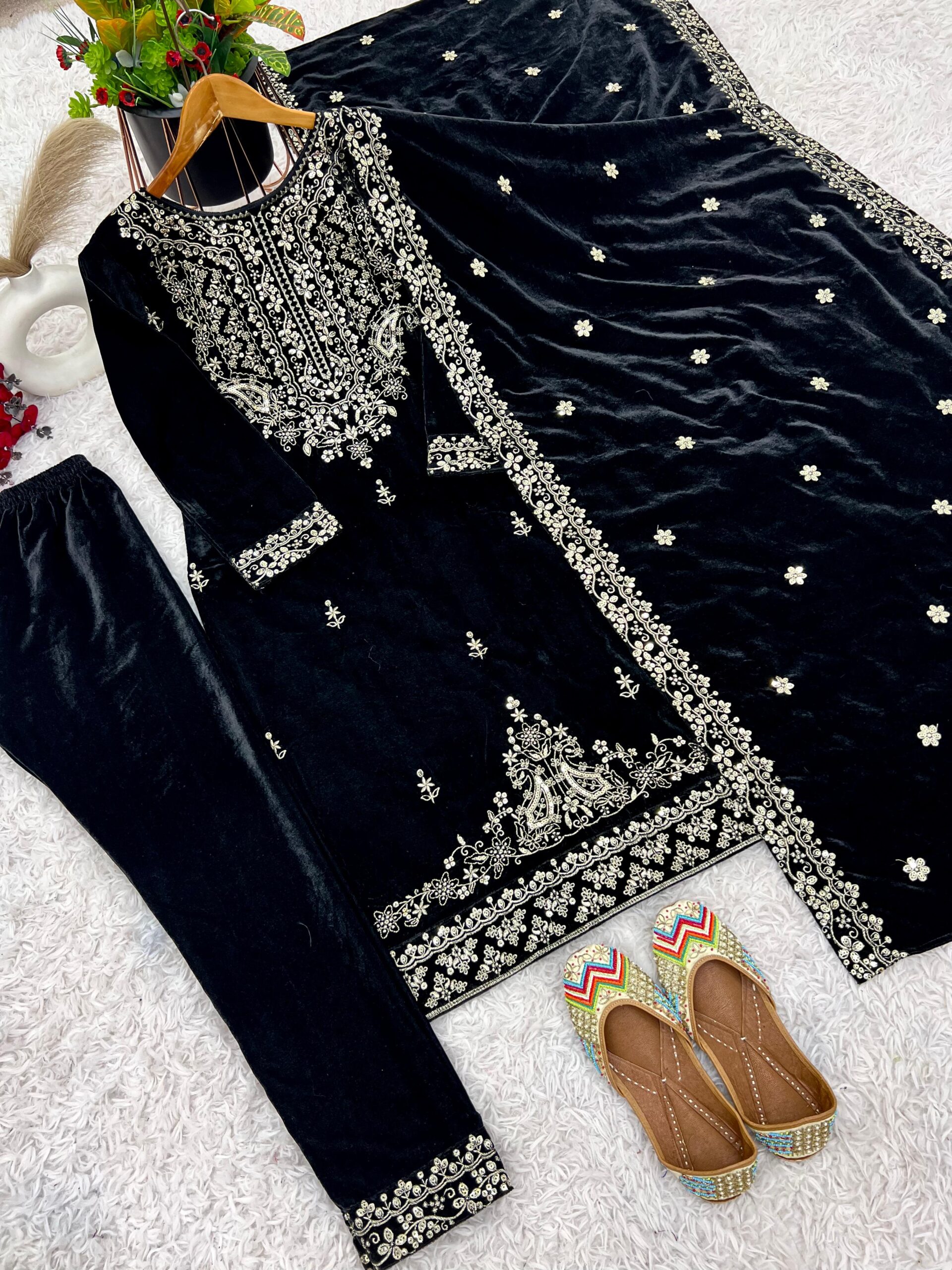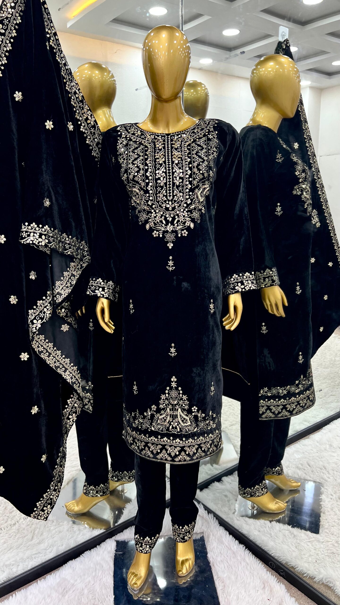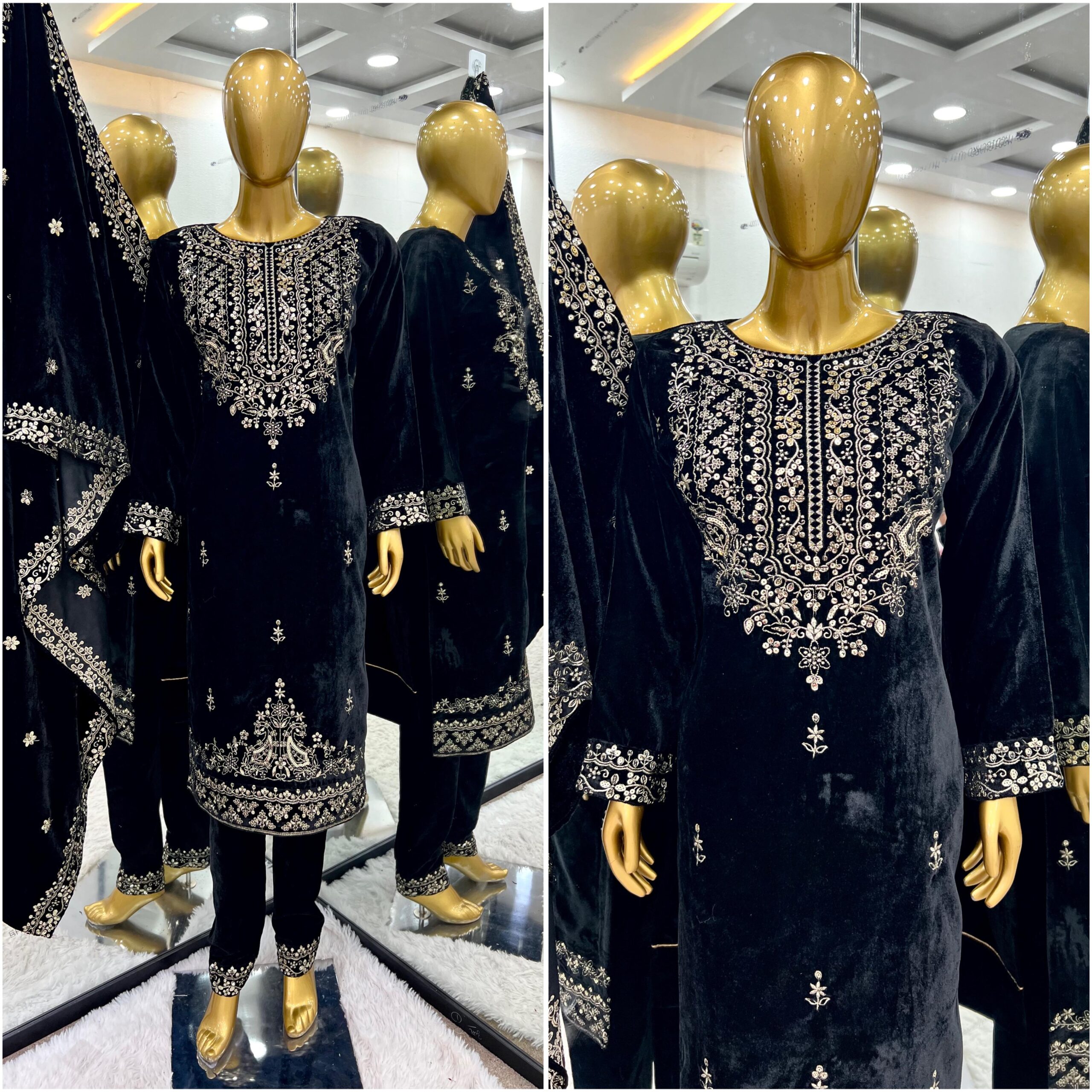 | Bottom | Viscose Velvet with Embroidery Sequence Work (Full Stitched) |