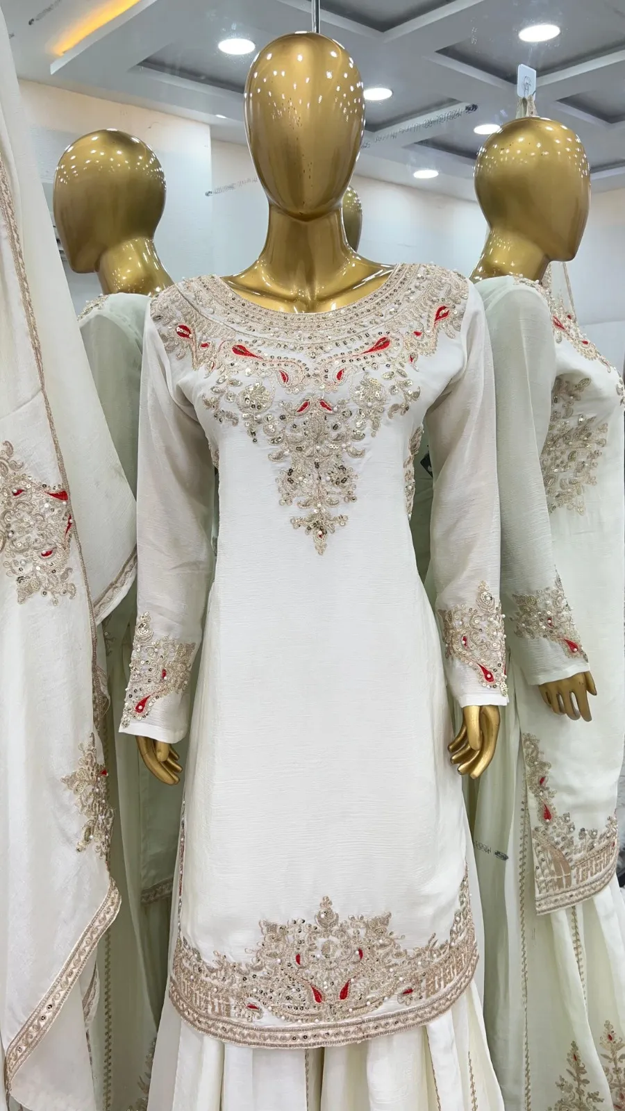 | Bottom | Pure Chinnon Silk with Heavy Embroidery Coding Dori-Sequence Work with Elastic |