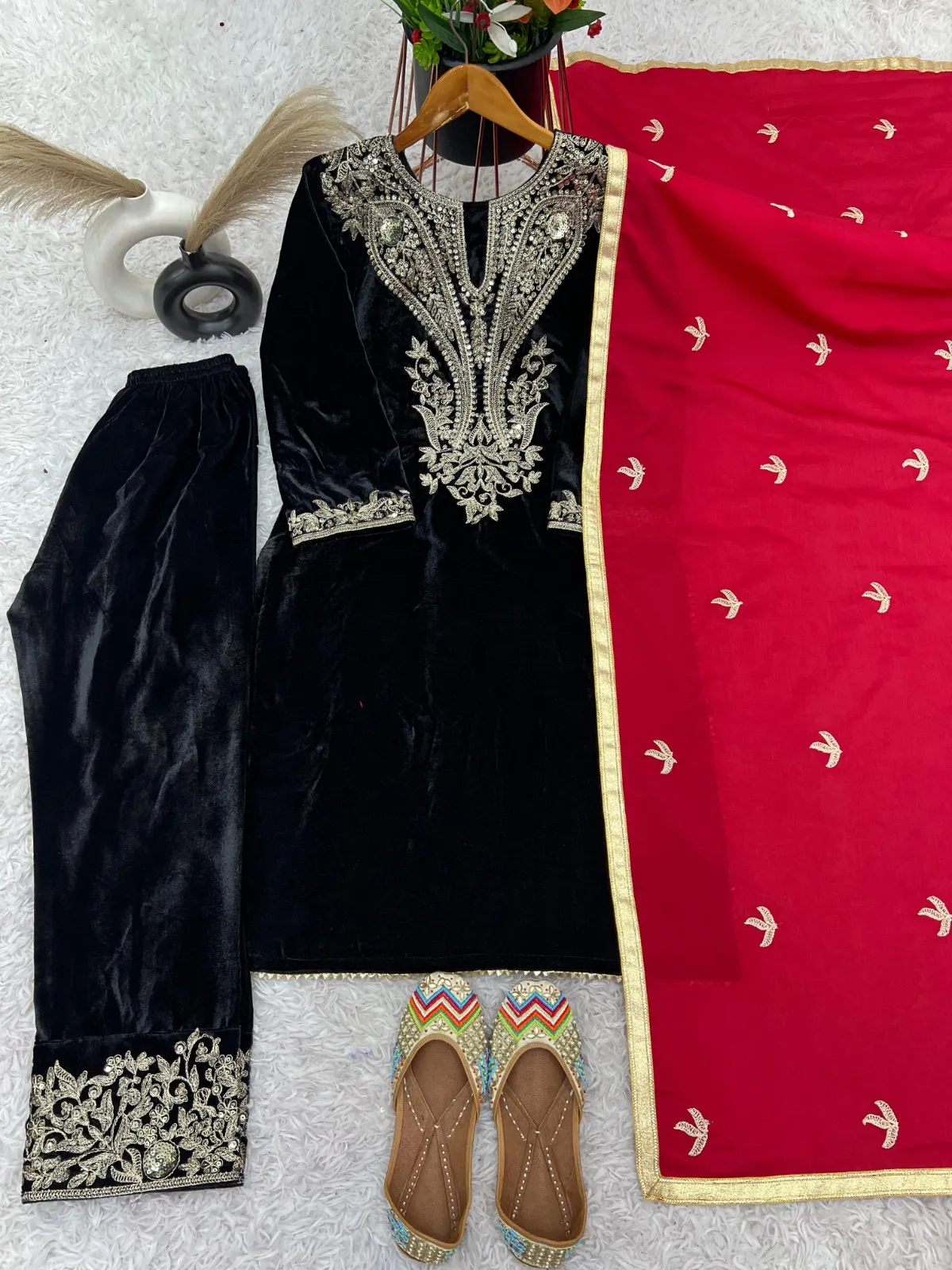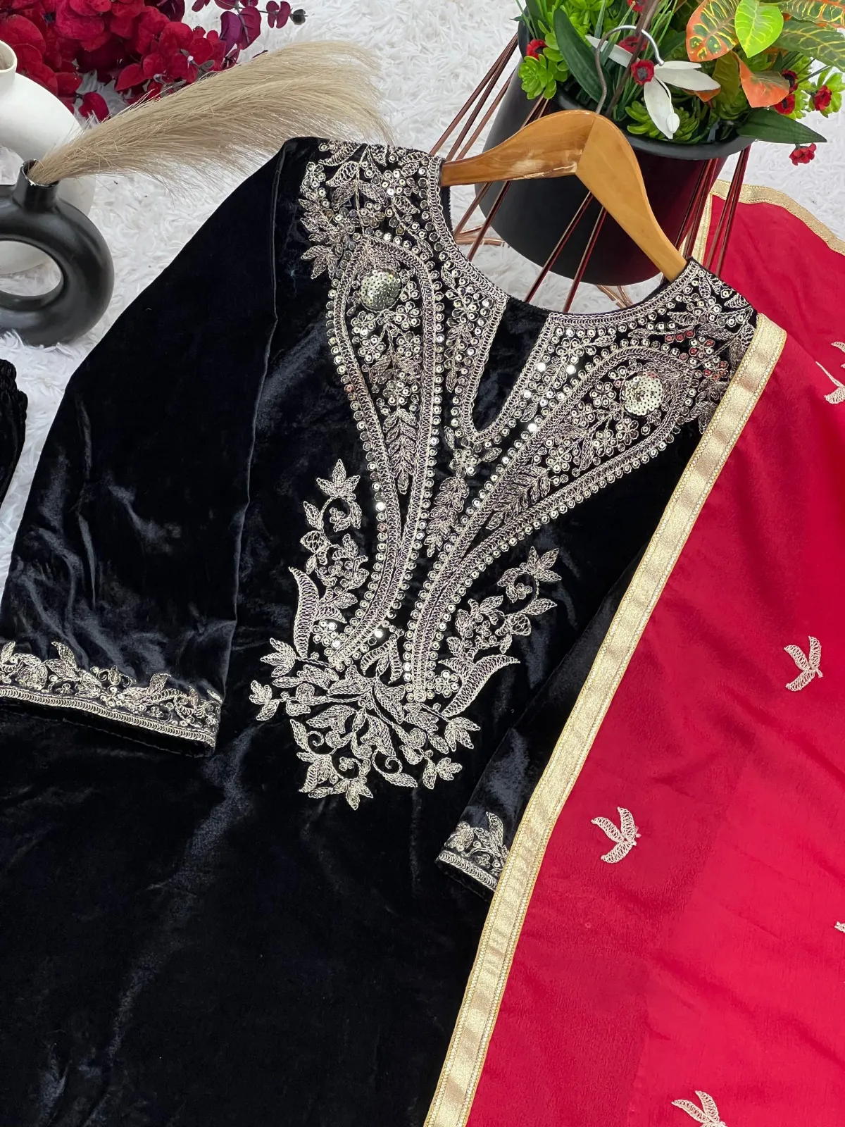 | Bottom | Viscose Velvet with Embroidery Sequence Work (Full Stitched) |