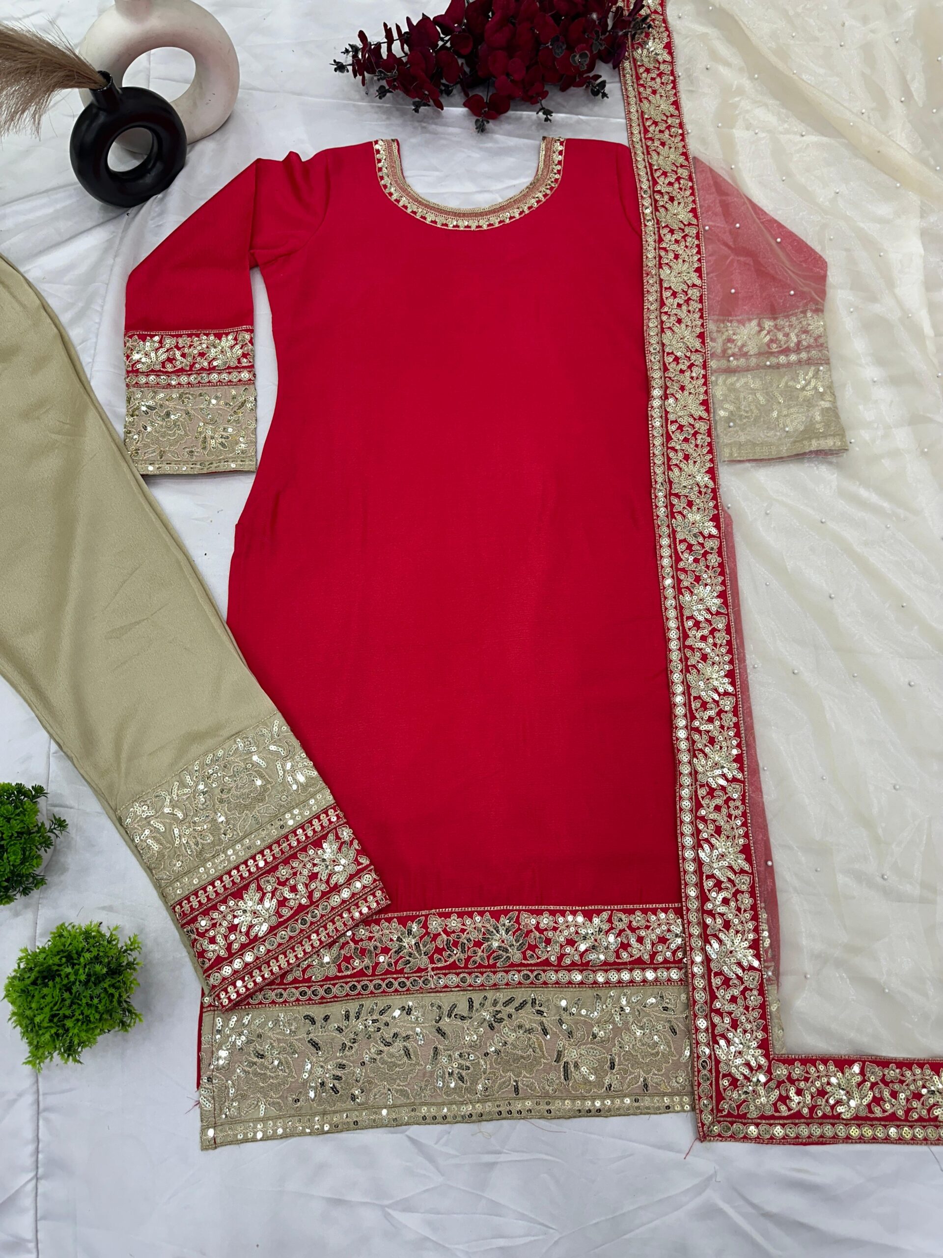 Step into elegance with the SRK-5229 Designer Collection, a stunning ready-to-wear outfit that exudes class and sophistication. Crafted from premium fabrics and detailed with exquisite embroidery, this set is perfect for festive occasions, weddings, and parties.