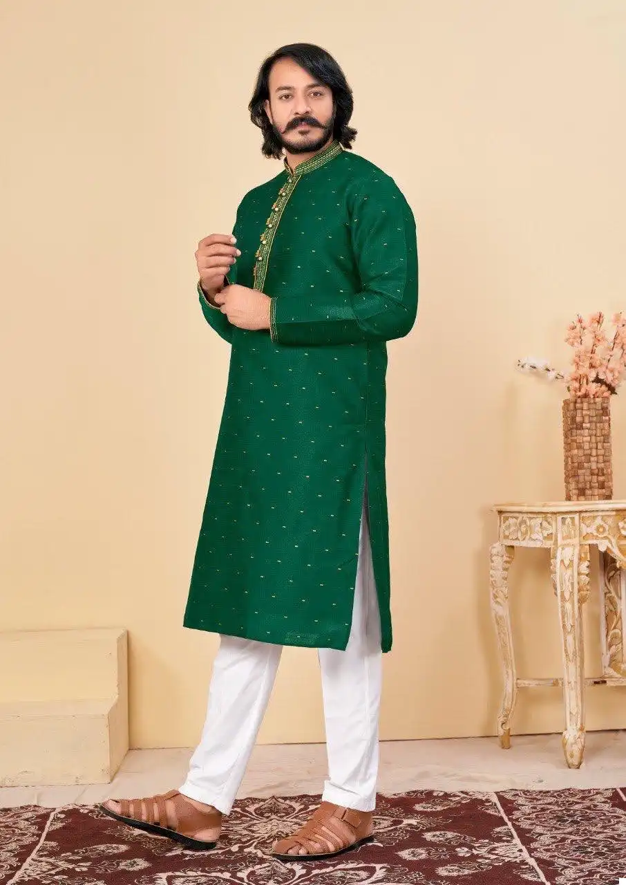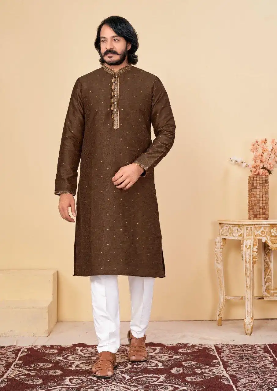 - Fabric: Made from luxurious silk fabric, the kurta epitomizes elegance and refinement.