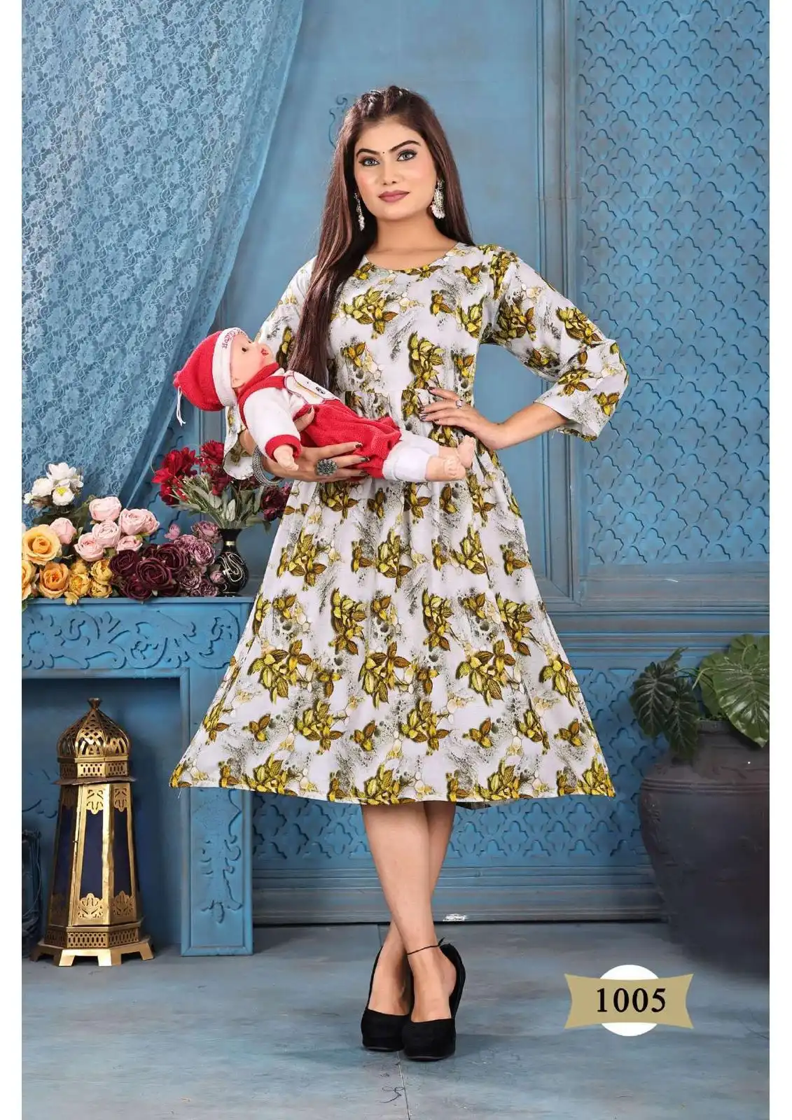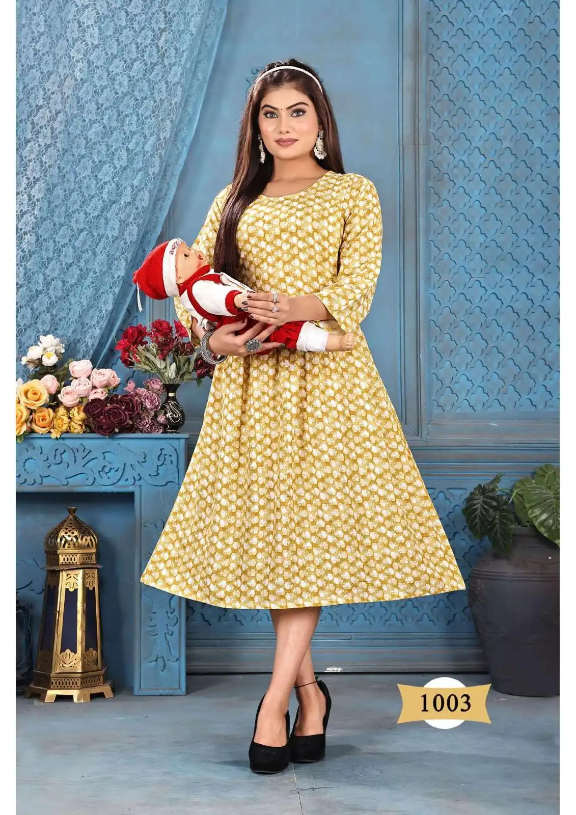 - Rayon Print Flared Top: Each piece in this collection showcases a Rayon Print Top with a flattering flared (ghera) pattern. The tops feature eye-catching prints and a design that offers a relaxed and comfortable fit. The flared design adds a touch of flair and elegance to your attire, making it ideal for casual outings and everyday wear.