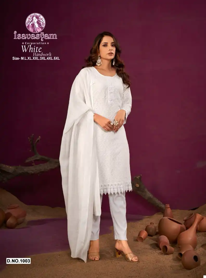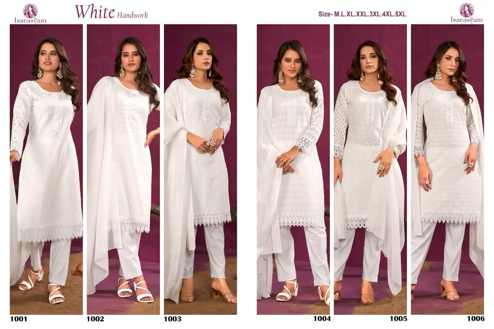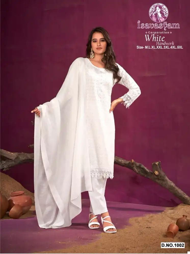 Vardan Ethnic White Handwork Pure Cambric Cotton Wholesale Readymade Salwar Suit Catalog