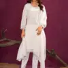 - Soft Linen Fabric Dupatta with Work Borders: Completing the ensemble is a Soft Linen Fabric Dupatta featuring work borders. The dupatta adds an extra layer of elegance and sophistication to your outfit, making it a perfect choice for creating a complete and striking look.