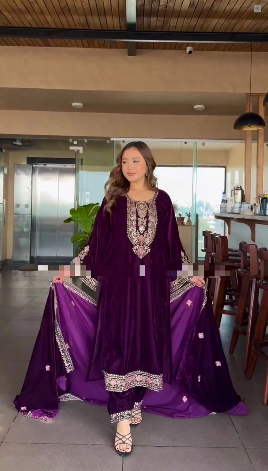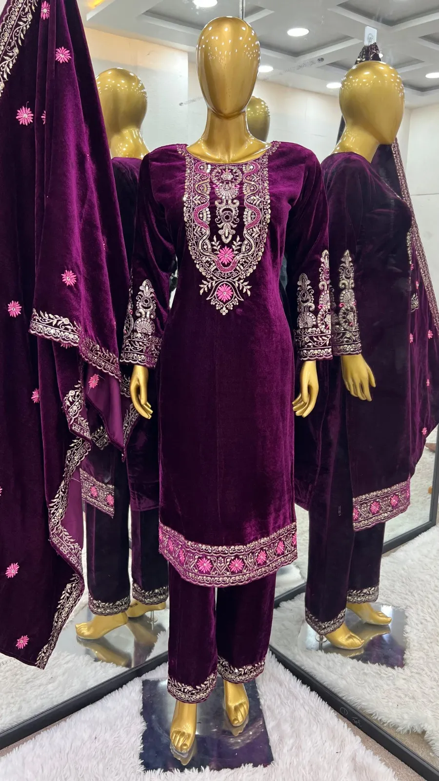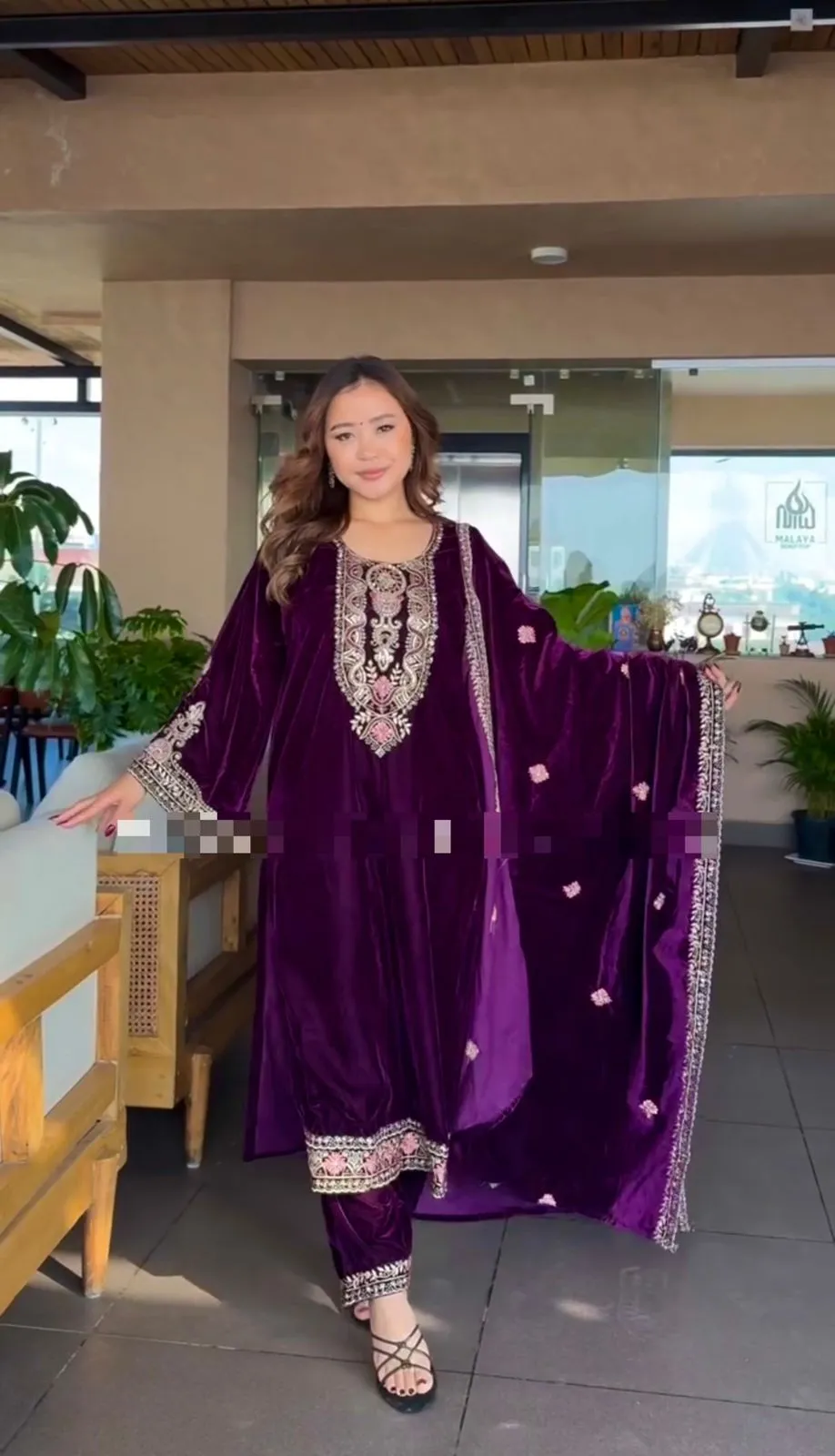 | Bottom | Viscose Velvet with Embroidery Sequence Work (Full Stitched) |