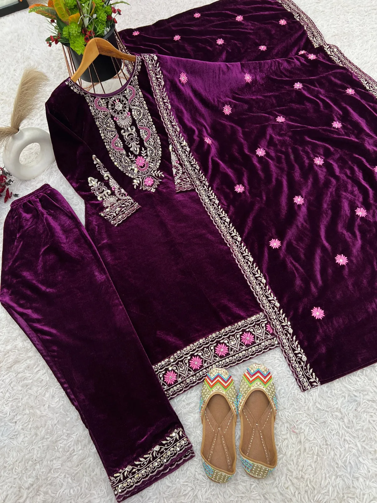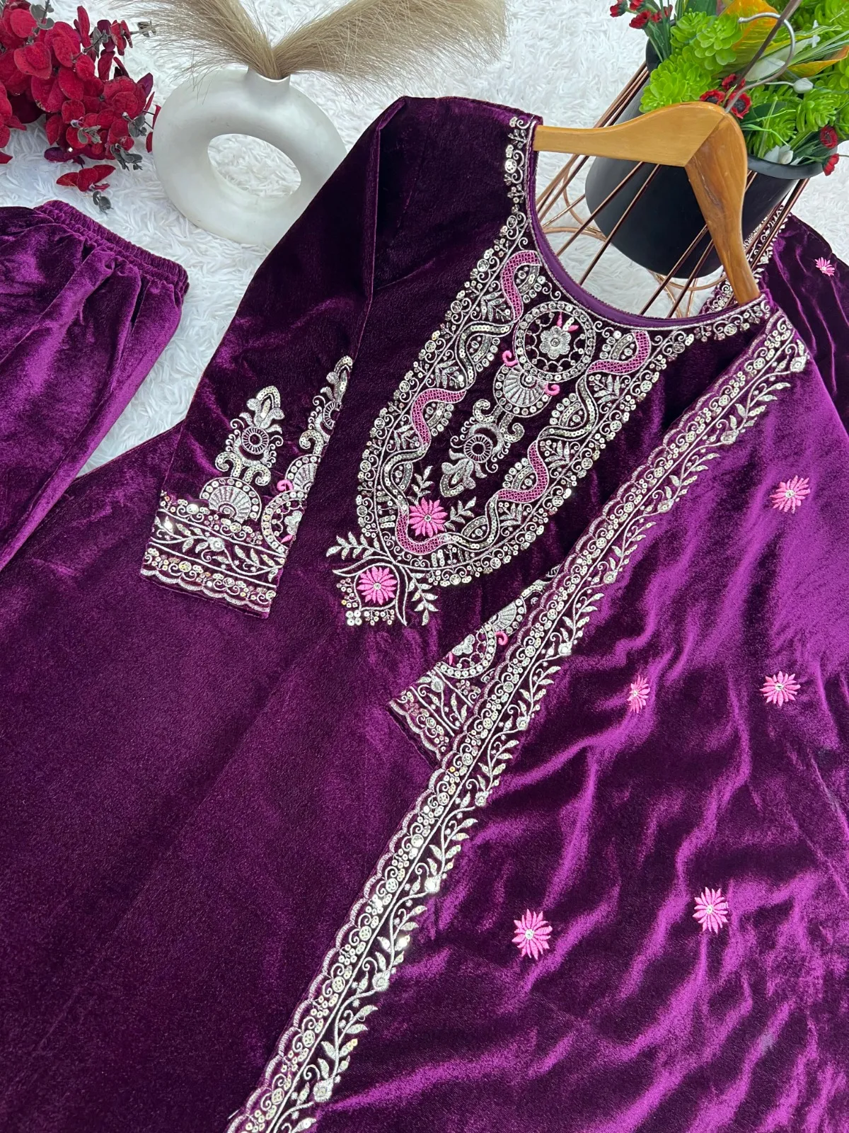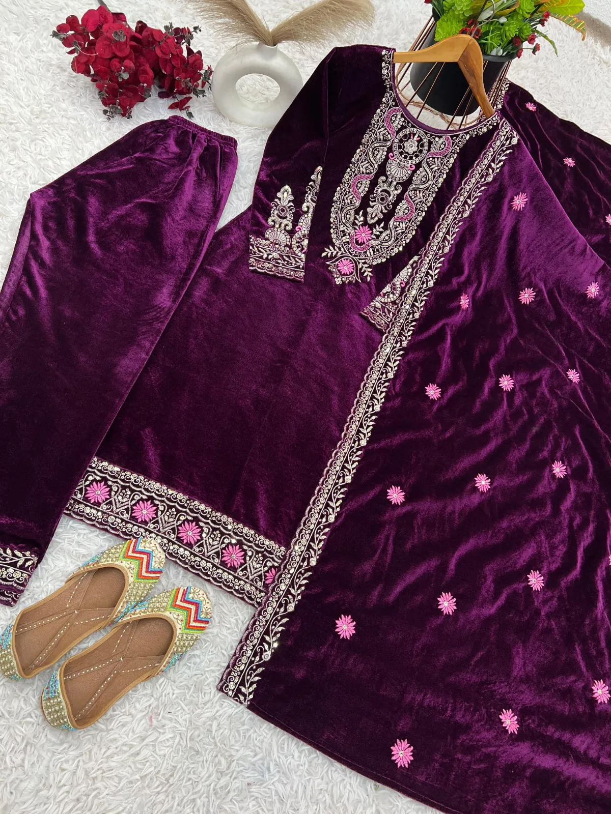 | Bottom | Viscose Velvet with Embroidery Sequence Work (Full Stitched) |