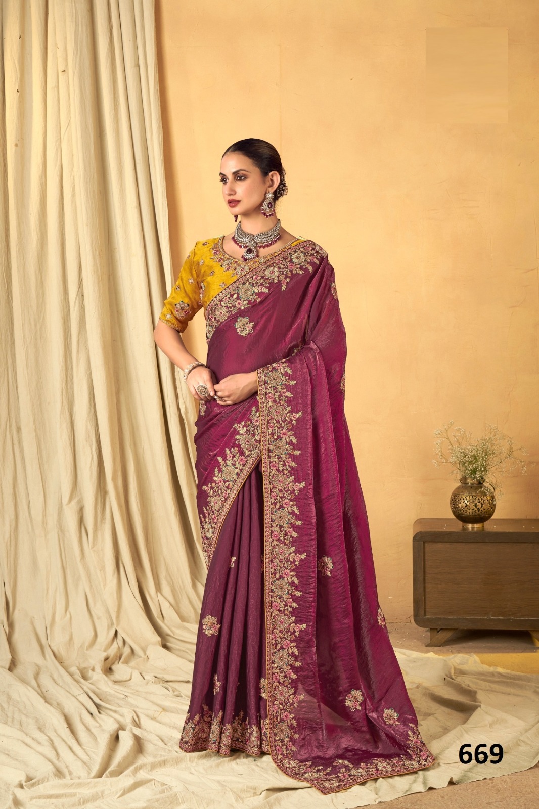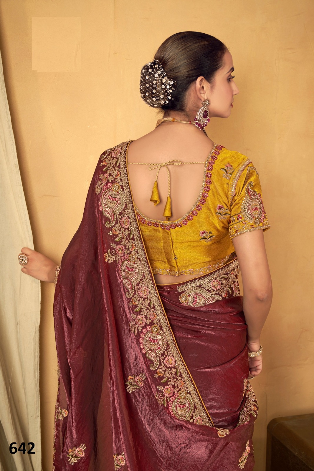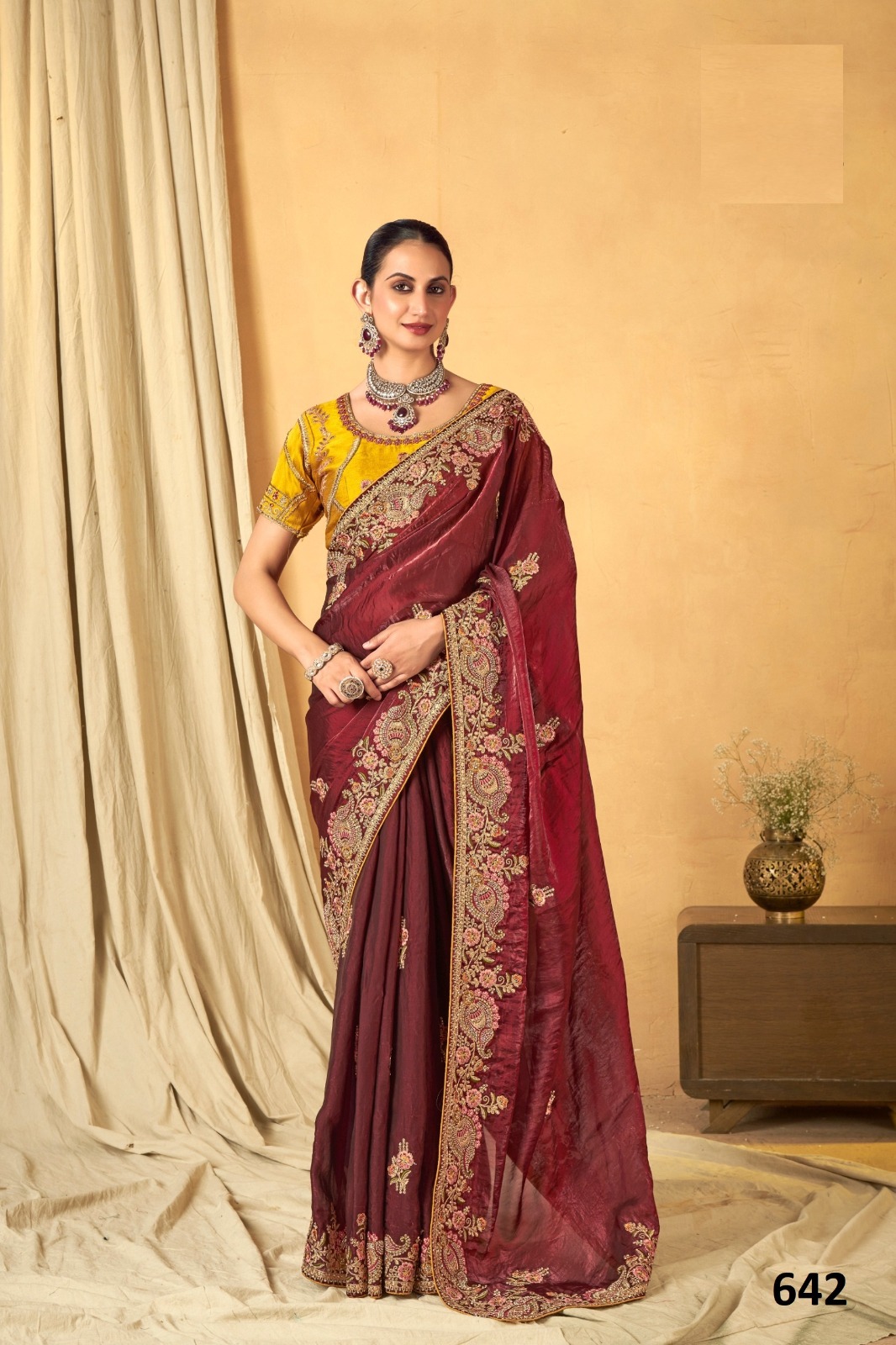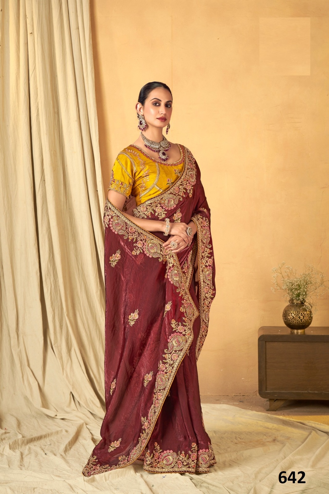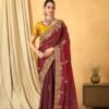 Vardan Fendi Maroon Heavy Embroidered Bridal Saree Collection.