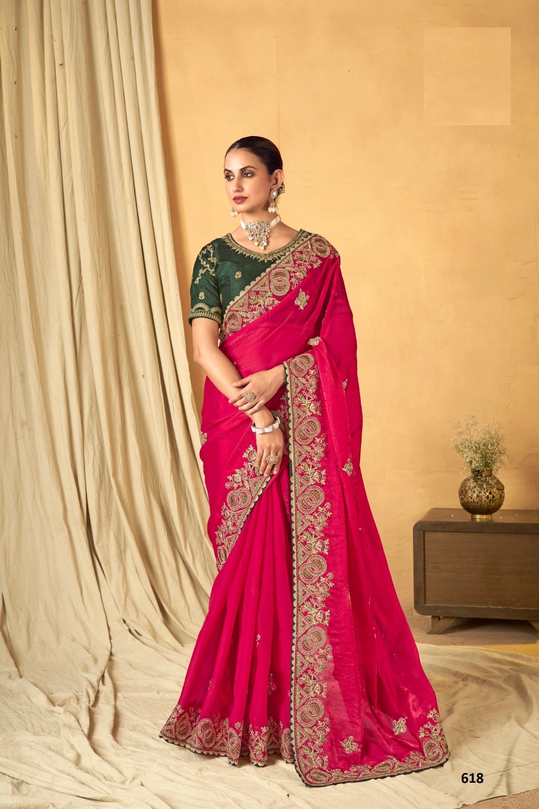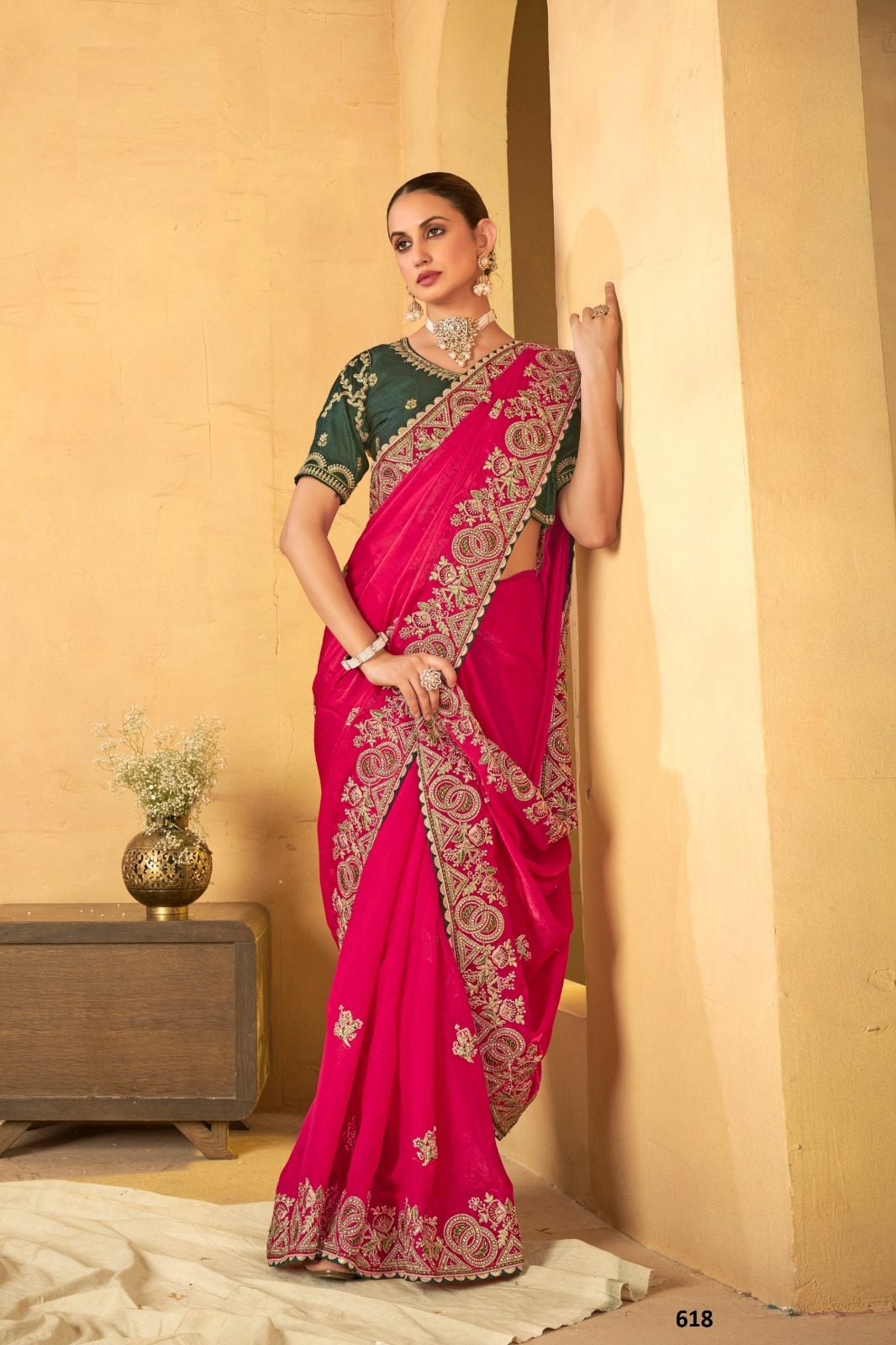 Vardan Fendi Rani Pink Heavy Embroidered Bridal Saree Collection.