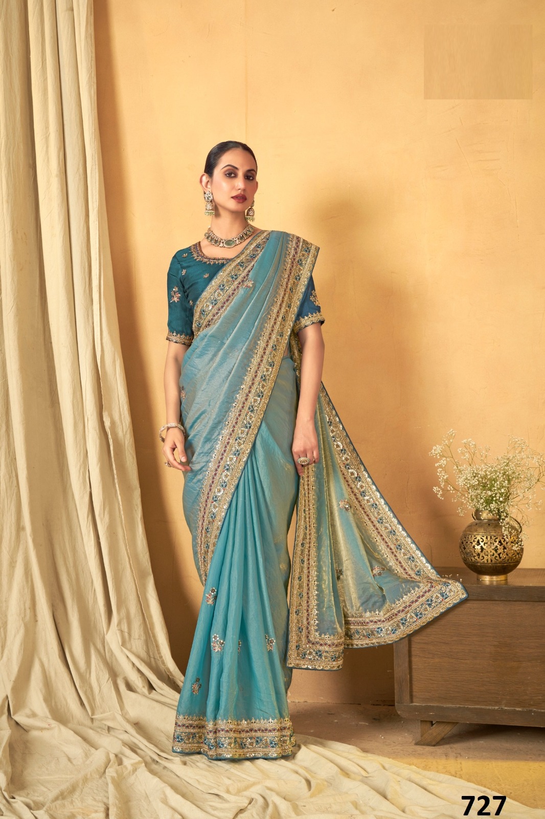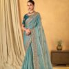 Vardan Fendi Teal Blue Heavy Embroidered Bridal Saree Collection.