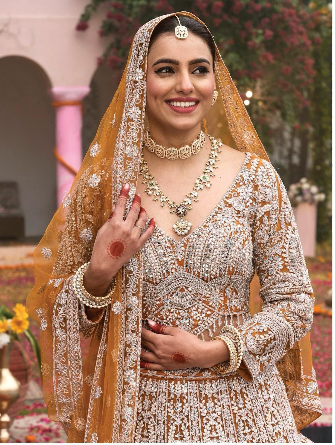 Vardan Golden Glam Embroidered Net Bridal Lehenga with Zari & Sequin Work.
