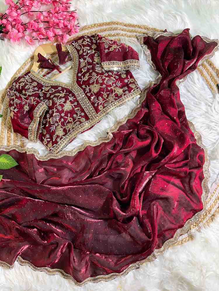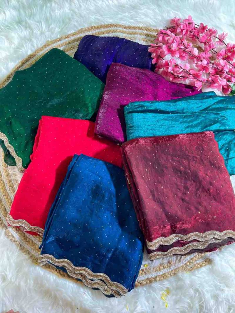 ✓Soft Fendy Sartin Silk ✓Heavy Jharkhand border work ✓Stitched blouse up to 42″ ✓₹1999 + GST ✓7 pcs catalog
