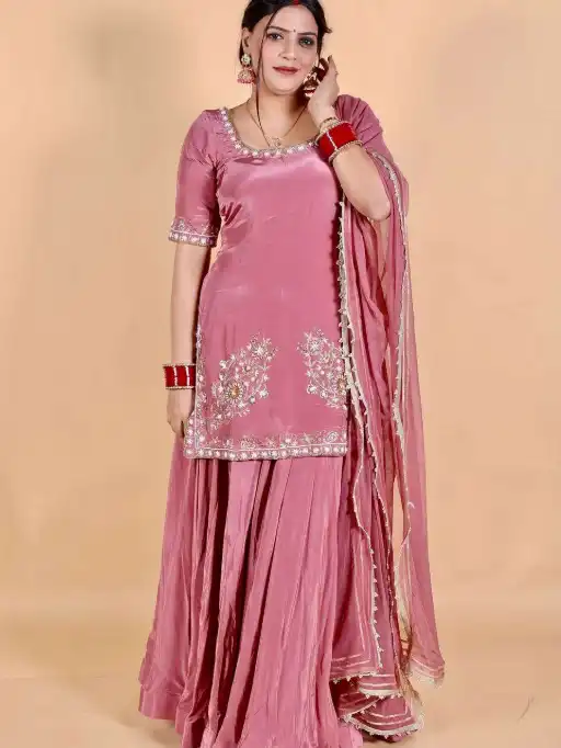 Shop Vardan Ethnic’s premium designer sharara suit set in natural crepe at unbeatable wholesale rates.