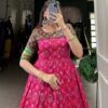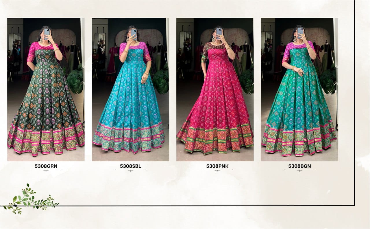 Introducing the LNB Kanjivaram Gown, a perfect blend of traditional Patola prints and modern craftsmanship. Designed in Jacquard Silk with Zari Weaving Work, this gown is a must-have for festive celebrations and special occasions.