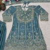 Sharara Plazo: Heavy Chinon Silk with 5mm embroidery sequence coding, full flair