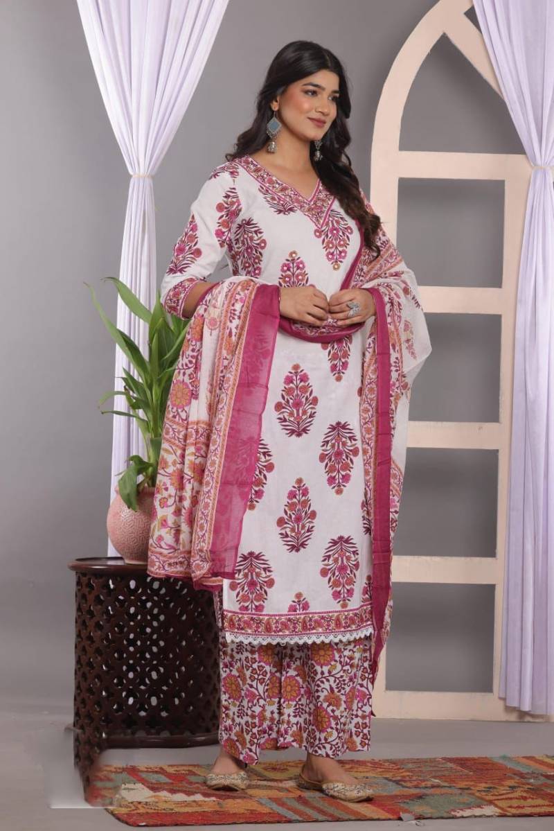 Vardan Naisha K 60 Wholesale Pure Cotton Kurti With Bottom Dupatta.