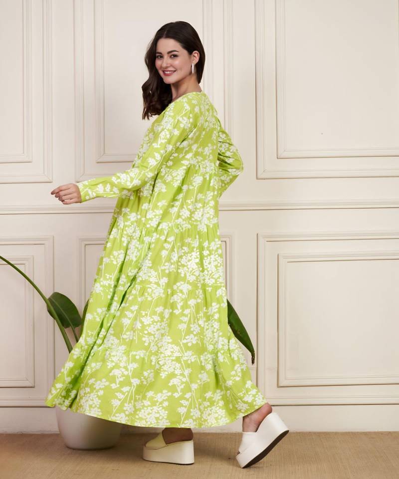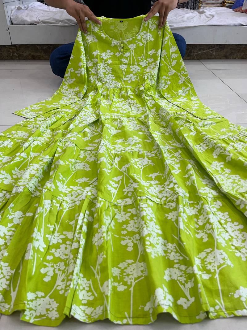 Vardan Radium Green Flared Elegant Cotton Gowns Collection.