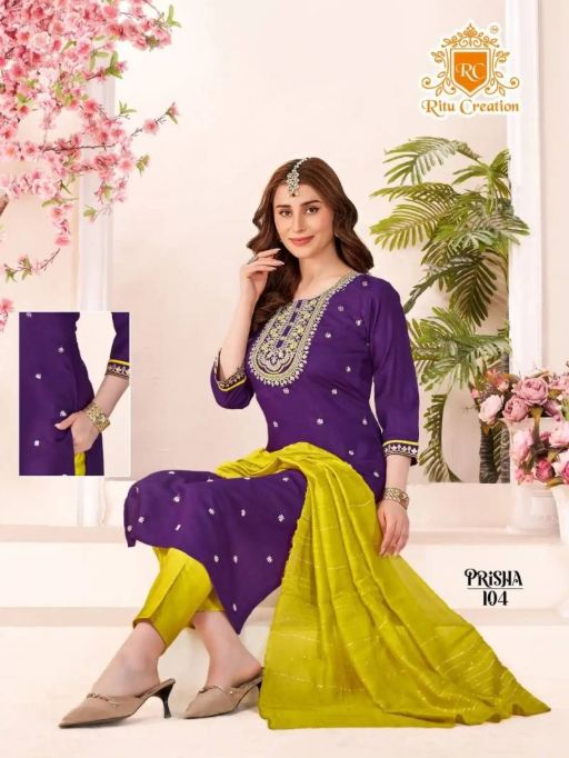 Buy Vardan Ethnic Ritu Prisha salwar suits made with Vatican fabric and chanderi dupatta at the best wholesale price.