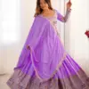 Exquisite coding dori embroidery combined with thread and sequin detailing across lehenga, choli, and dupatta. Dupatta is finished with a beautiful four-side lace border. The lehenga features full flair with canvas pata and cancan for added volume and elegance.