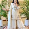 Make a style statement with SRK-5169, a luxurious Pure Chinnon Silk Gharara Set adorned with Heavy Embroidery Sequence Work. Designed for elegance and comfort, this fully stitched ensemble is perfect for festive wear and special occasions.