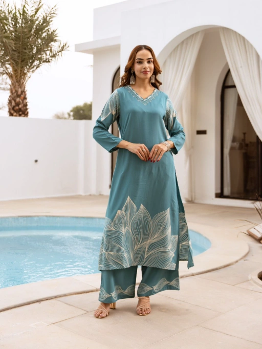 Vardan Summer Collection German Rayon Kurti Palazzo Set – Wholesale Launch
