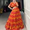 Vardan Vaatika Floral Print Chiffon with Pearl Work Blouse Lehenga Collection.