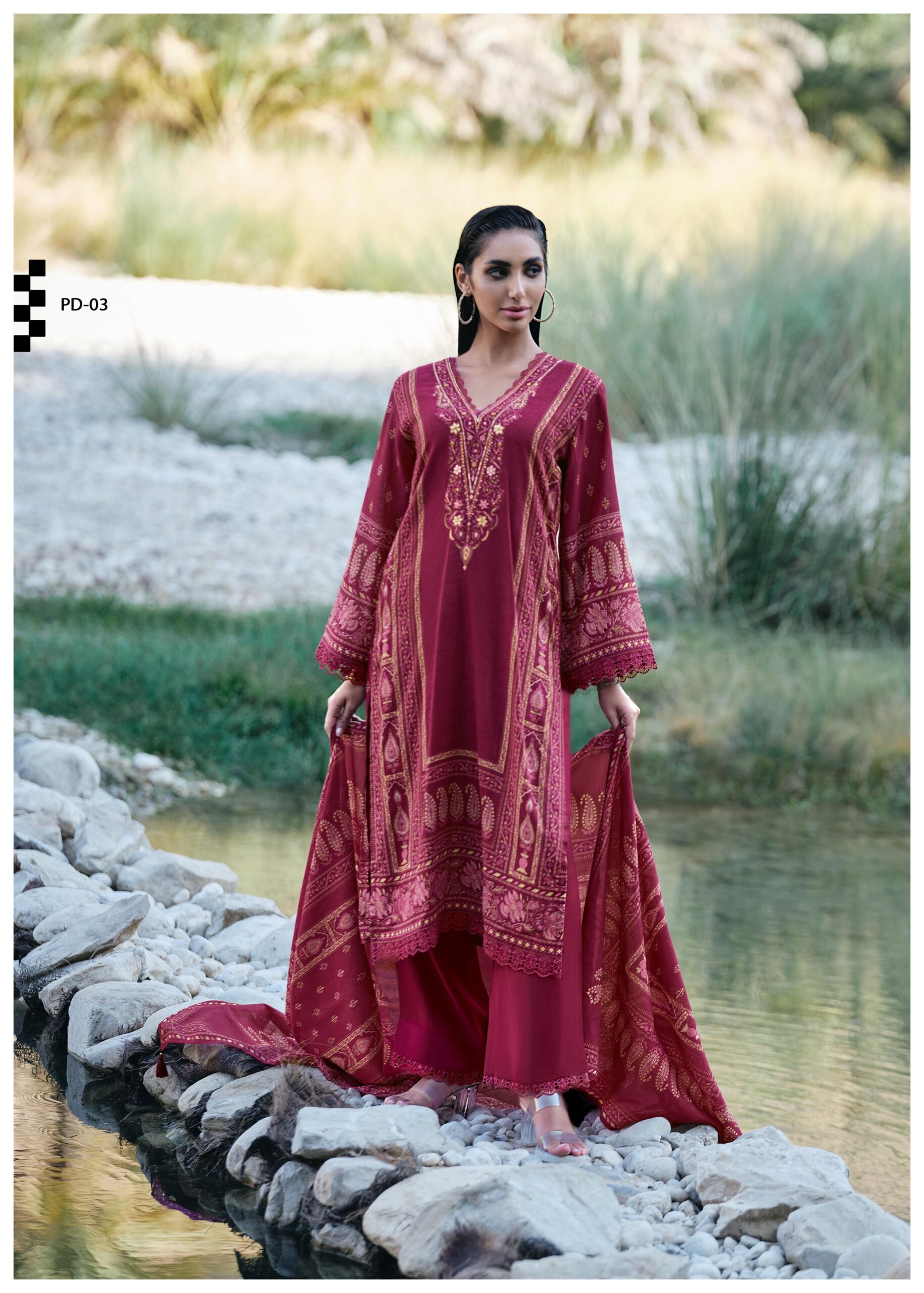The Varsha Paradise Collection is a refined selection of cotton linen suits, designed for elegance and comfort. Made with premium cotton linen fabric, this collection offers a blend of softness, breathability, and durability. The exquisite prints and intricate embroidery make it perfect for daily wear, festive occasions, and formal gatherings.