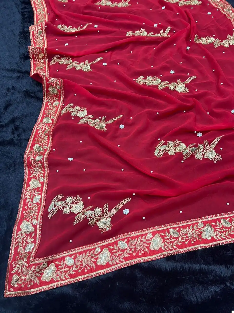 Heavy Georgette Fancy Beautiful Embroidery Zari And Sequence With Moti Work |