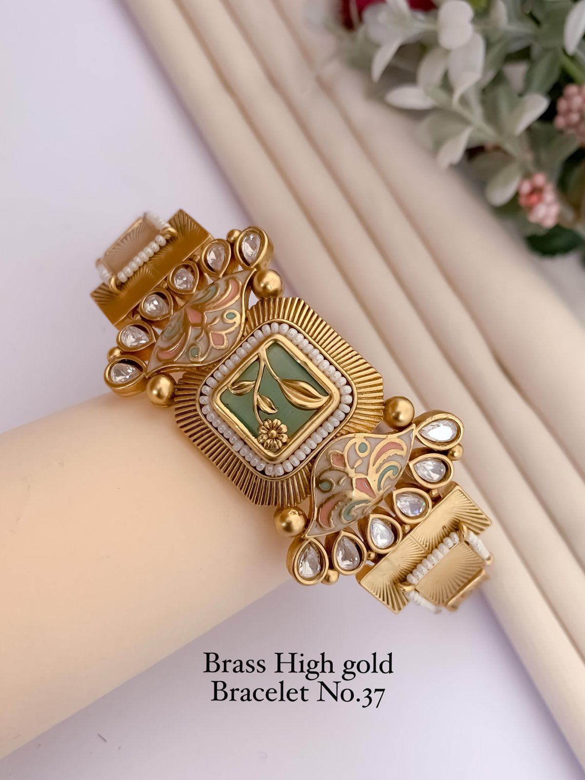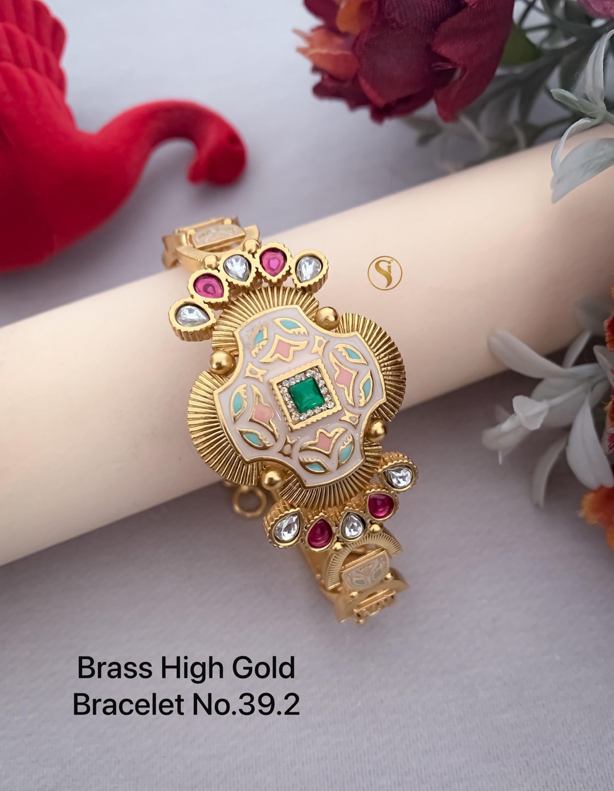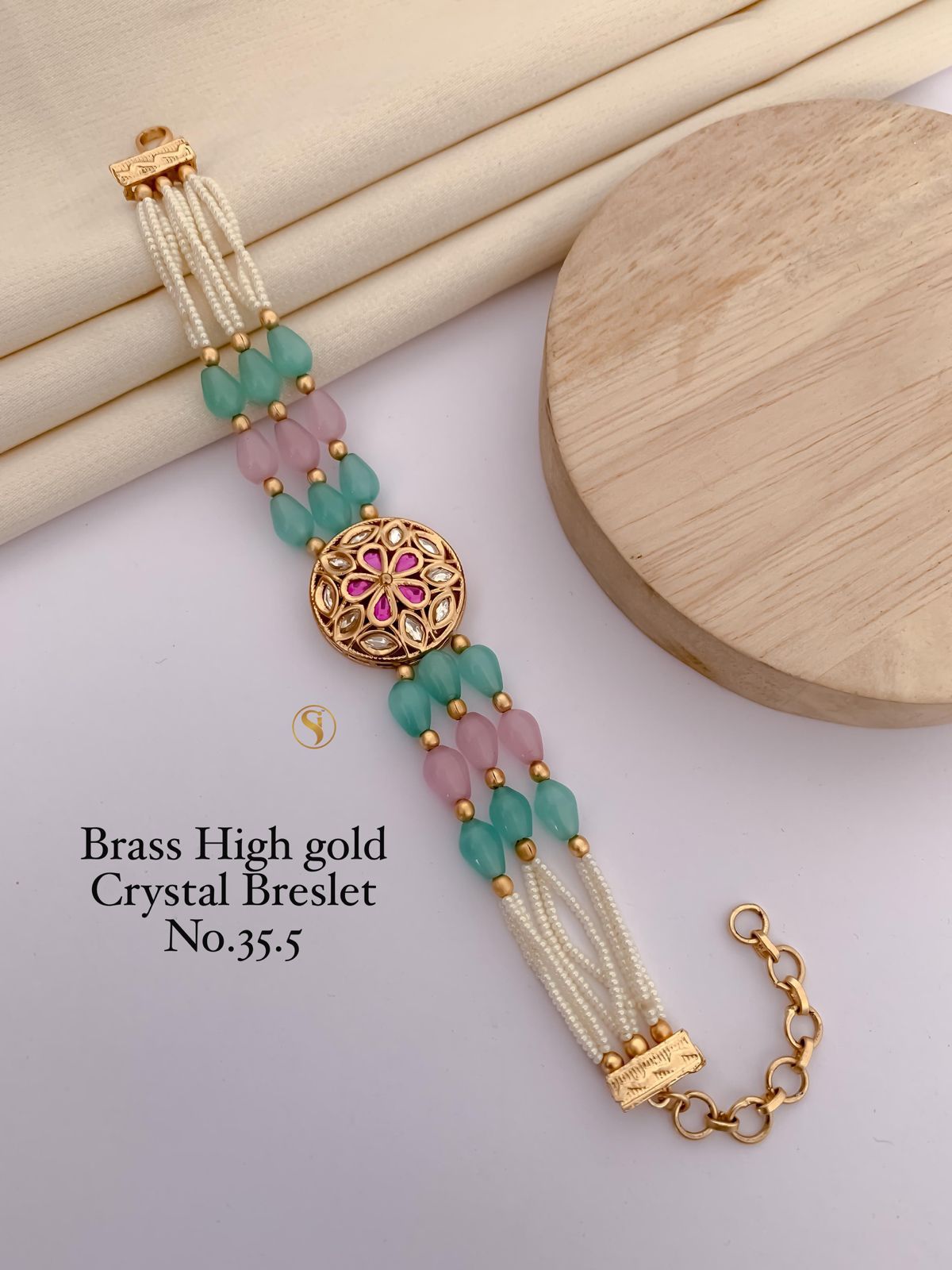 Add a touch of sophistication to your wrist with this elegant Brass High Gold Crystal Bracelet. Perfect for traditional and modern outfits, this piece blends timeless charm with contemporary finesse.