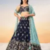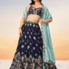 VE Navy Blue Poly Georgette Heavy Sequinned Bridesmaid Lehenga.