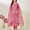 Exquisite Roman Silk Ethnic Set with Organza Handwork from Vardan Ethnic – A Fusion of Luxury and Craftsmanship