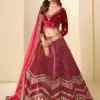 Velvet Designer Trendy Red Lehenga Choli with Net Dupatta