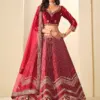 Velvet Designer Trendy Red Lehenga Choli with Net Dupatta