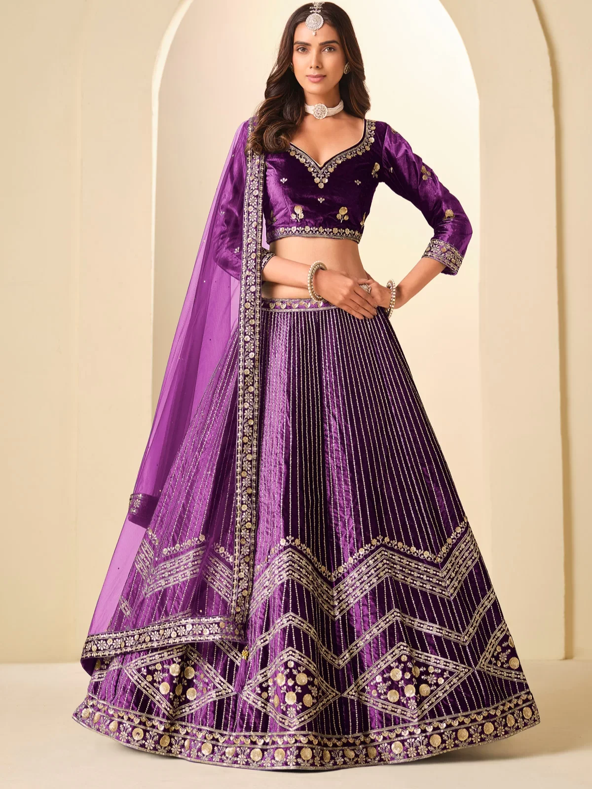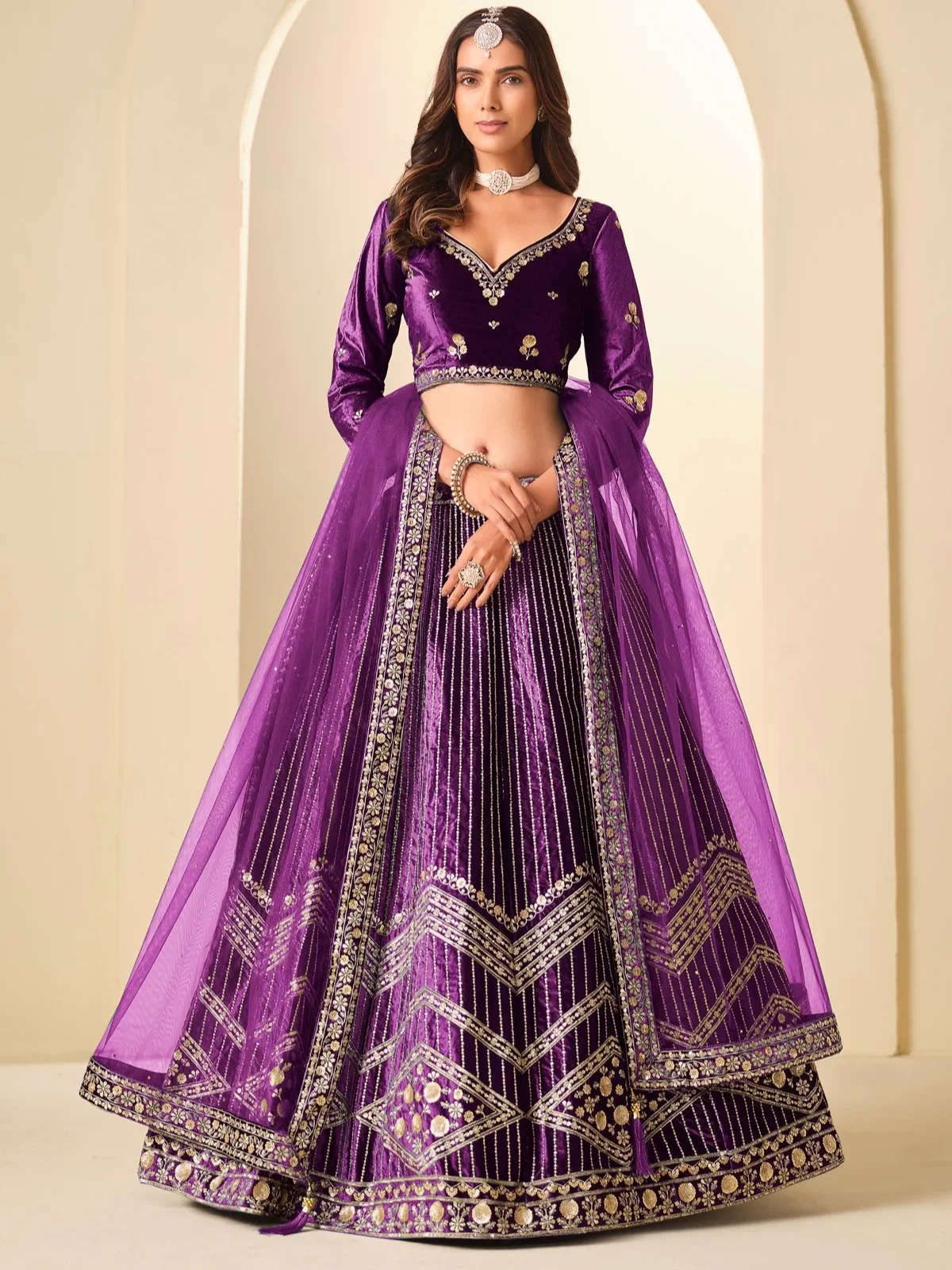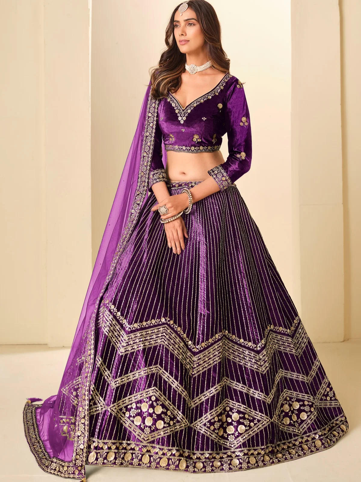 Velvet Designer Trendy Purple Lehenga Choli with Net Dupatta