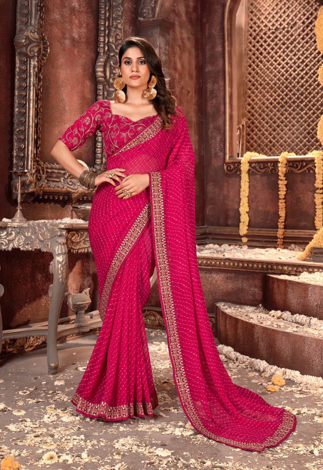 *Vihana Georgette Beautiful Bandhni Print Saree