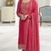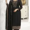 The set is completed with a Silk Georgette dupatta, echoing the top’s fabric choice for a cohesive look. The dupatta is accentuated with its own embroidered detailing, making it more than just an accessory; it’s the statement piece that ties the entire outfit together.