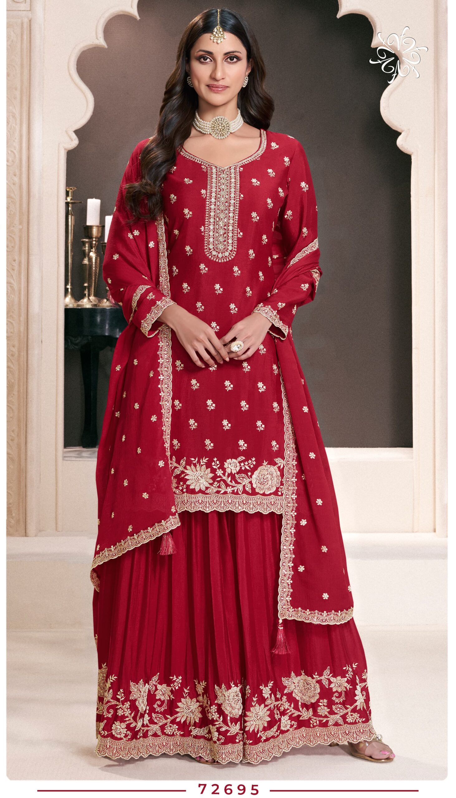 The Kuleesh collection showcases exquisite embroidery that adds a touch of sophistication to every piece. The lightweight and breathable Chinon fabric ensures comfort, while the intricate designs make it a standout choice for your ethnic wardrobe.