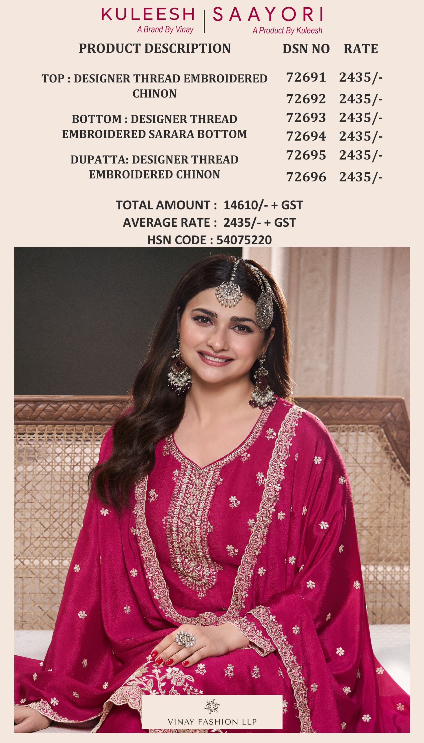 Elevate your style with Kuleesh by Saayori. Whether you’re attending a wedding or celebrating a festival, this 6-piece set is designed to make you look and feel extraordinary. Add a touch of timeless beauty to your wardrobe today!