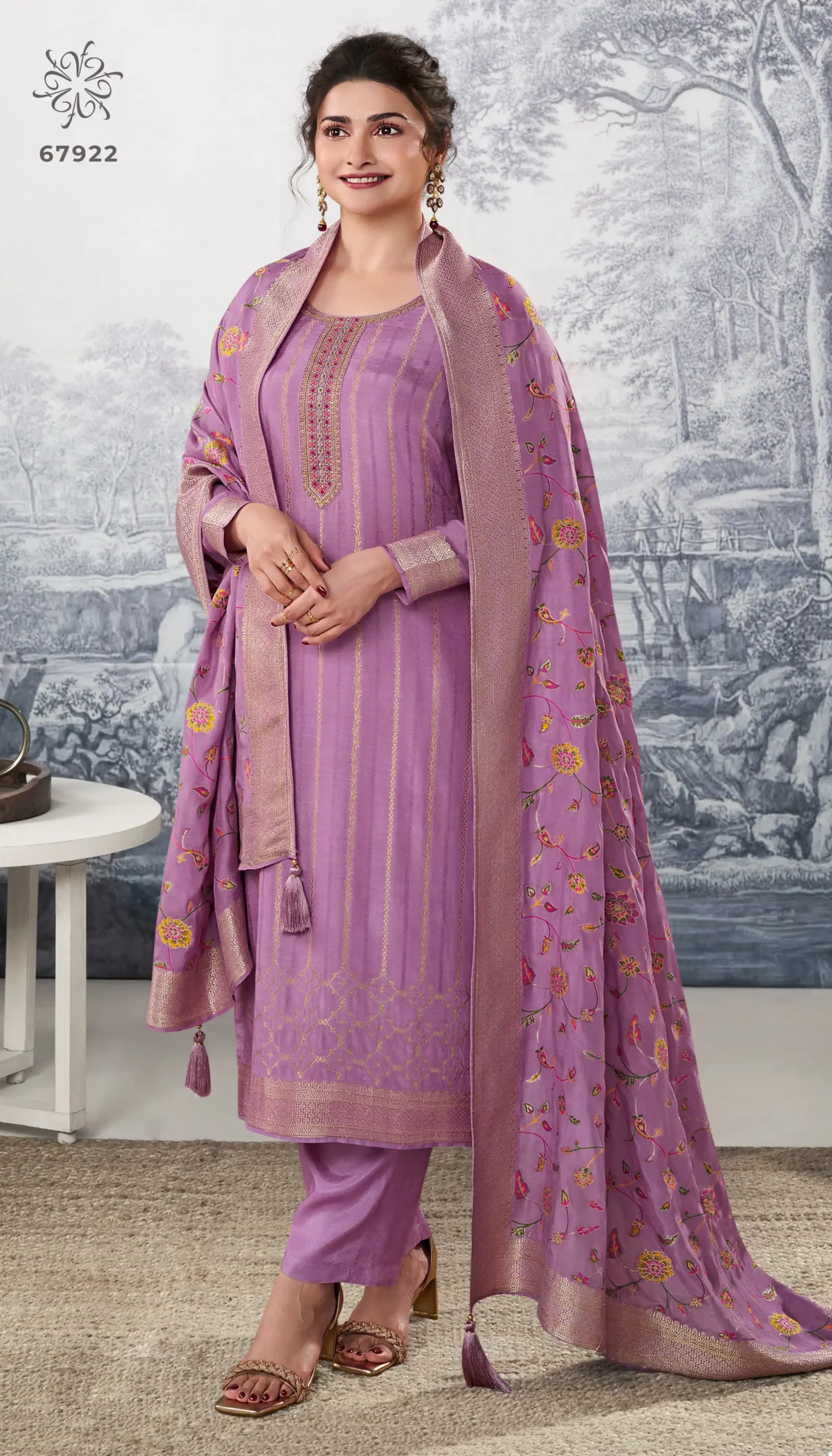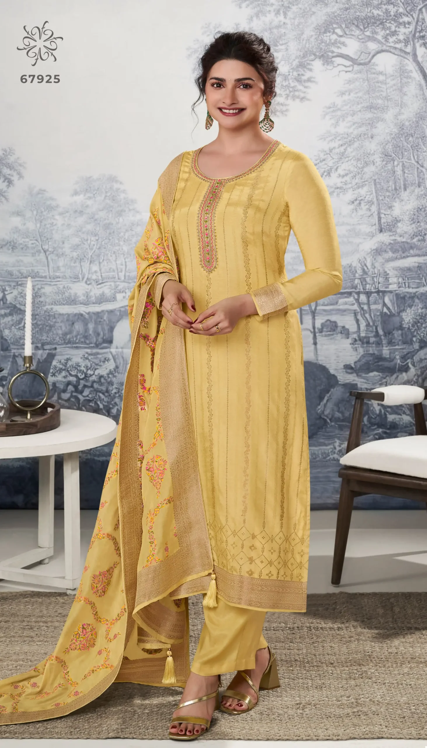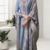 - Dupatta: With Machlin Jacquard With Multi Thread Weaving Dupatta – The scarf or dupatta accompanying the outfit is made of Machlin Jacquard fabric with multi-thread weaving.