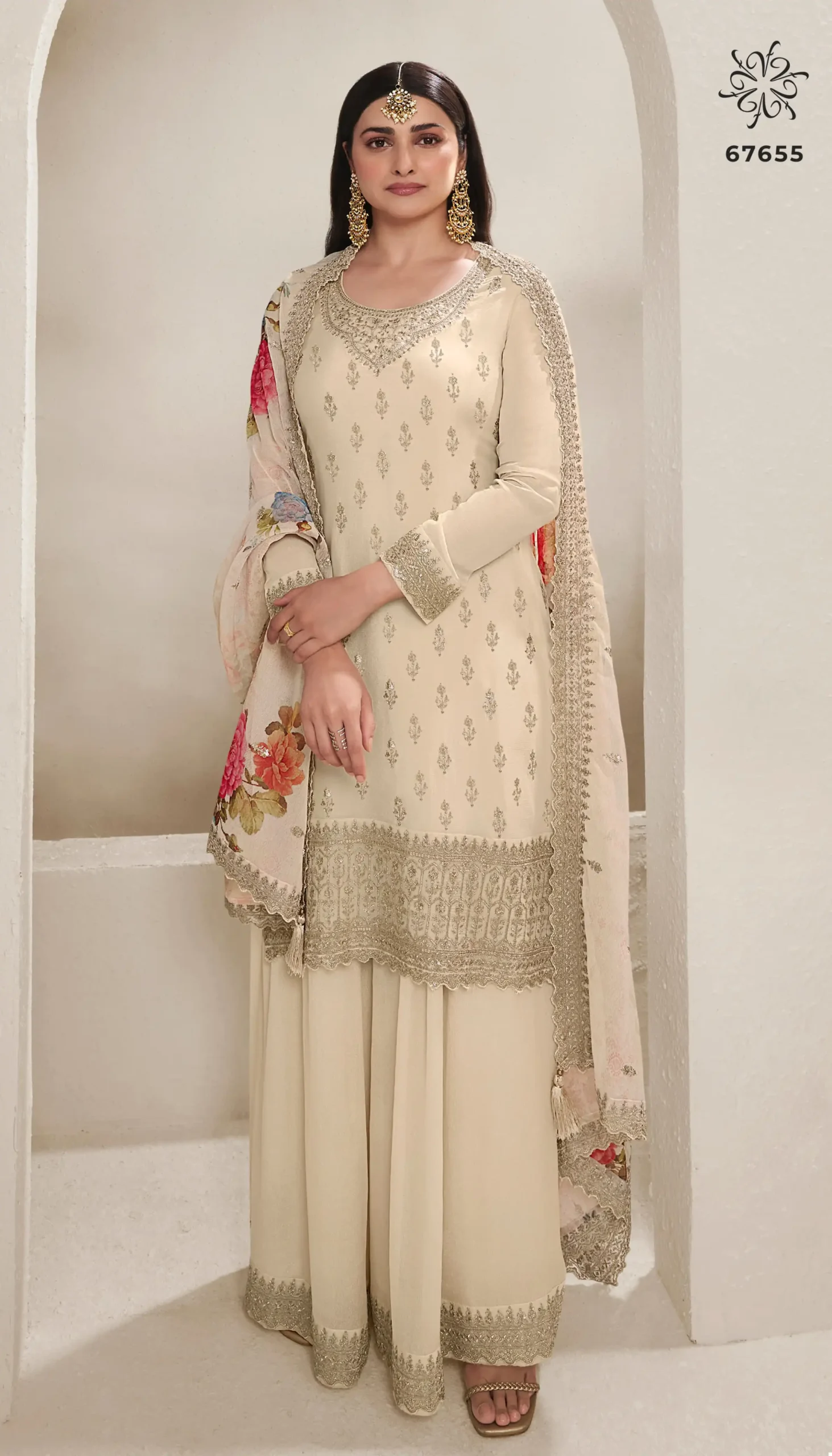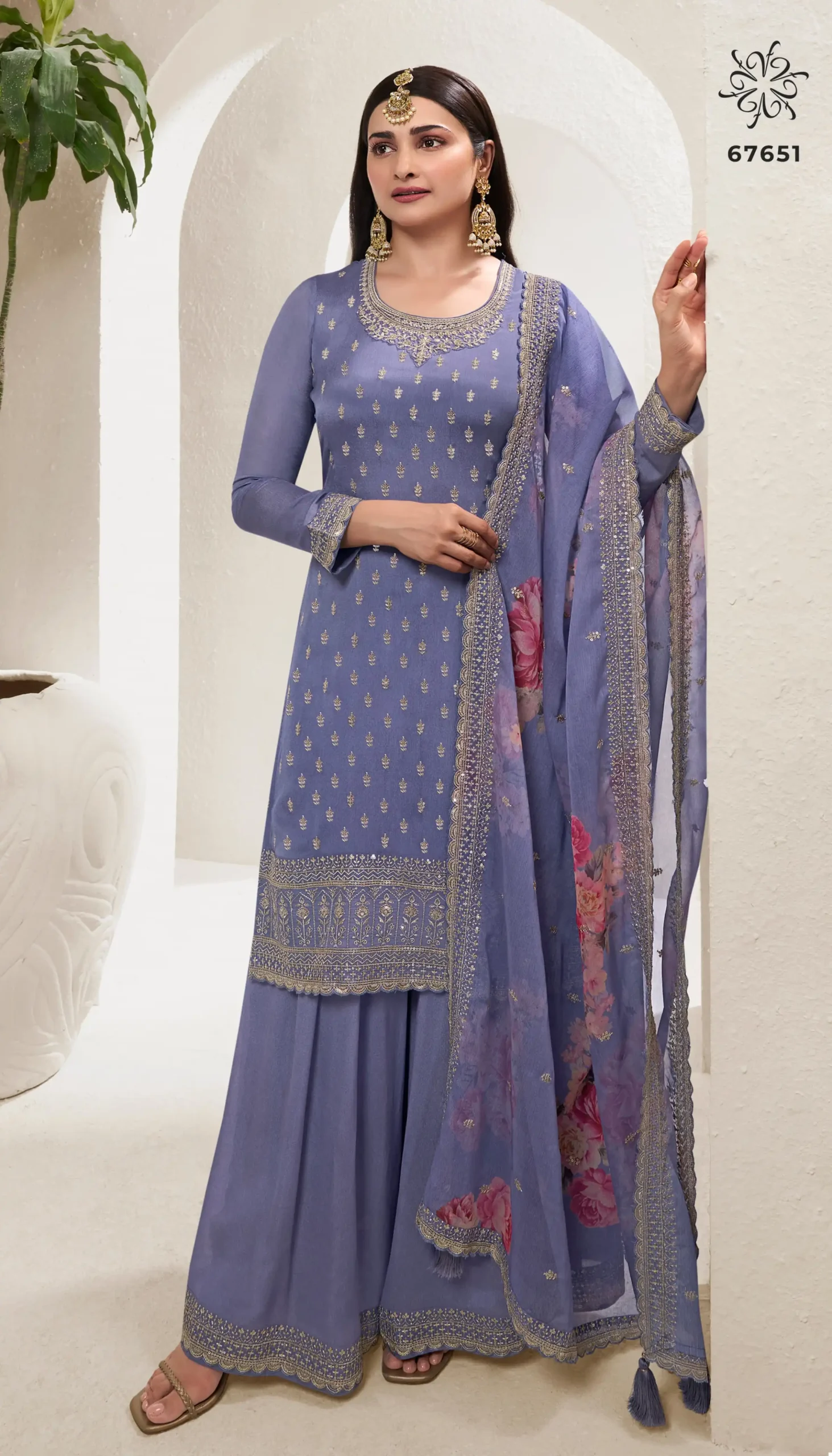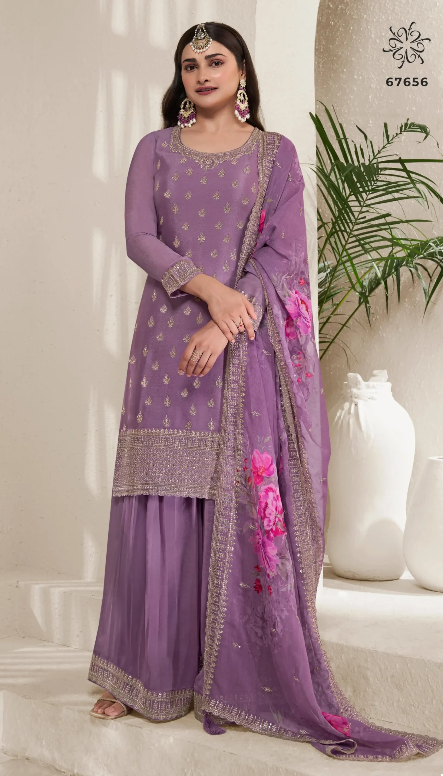 - Material: Digital Printed Embroidered Chinnon